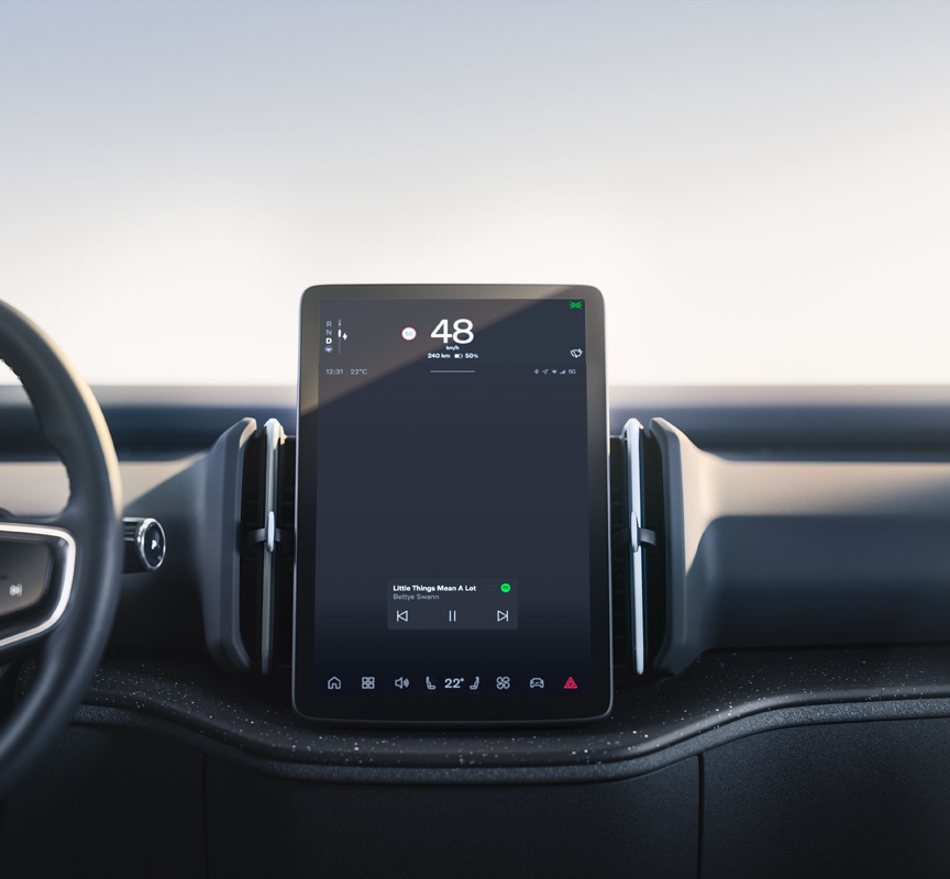 来到内饰这款车的设计延续了原厂的斯堪维尼亚的北欧风设计风格,整个内饰采用了极简设计理念,加上以环保和可再生材料打造,完全贯彻原厂追求环保和可持续发展的理念,可以看到原厂直接取消了方向盘后面的全液晶仪表和实体按键,改由 12.3 寸 iPad 直立式中控触屏主机显示车辆的讯息及操控车内功能,让它看起来未来感十足,另外这个屏幕和原厂旗下其他车型一样内置了 Android 系统,可以支援你从应用商店下载 APP,而且还配备了无线 Apple CarPlay 连接功能,加上是骁龙智能座舱平台及支援 5G 联网,整体使用起来智能又顺畅。