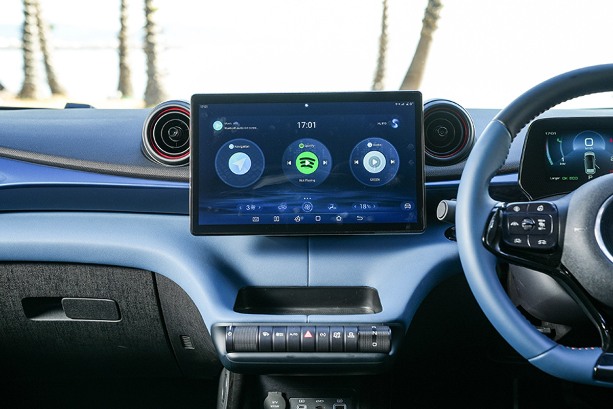 这款车不管是外观还是内饰的部分其实都融入了海洋美学的设计元素,可以看到整个车头的线条设计就像海豚跃出水面时一样,配合上造型小巧的头灯组,给人一种很萌很可爱的视觉效果,至于在内饰就可以看到漩涡式的冷气出风口设计,并且从左至右还有波浪般的饰板贯穿整个中控台,而且这款车还有 5 寸全液晶仪表和 12.8 寸可旋转悬浮式中控触屏主机,另外像是全景天窗、座椅加热,双拼色运动座椅,并且长达 2,700 mm 的轴距相信可以为它带来出色的车内空间。
