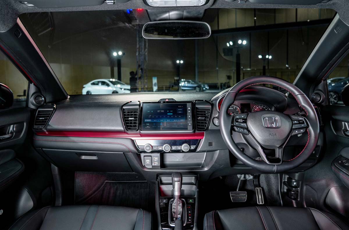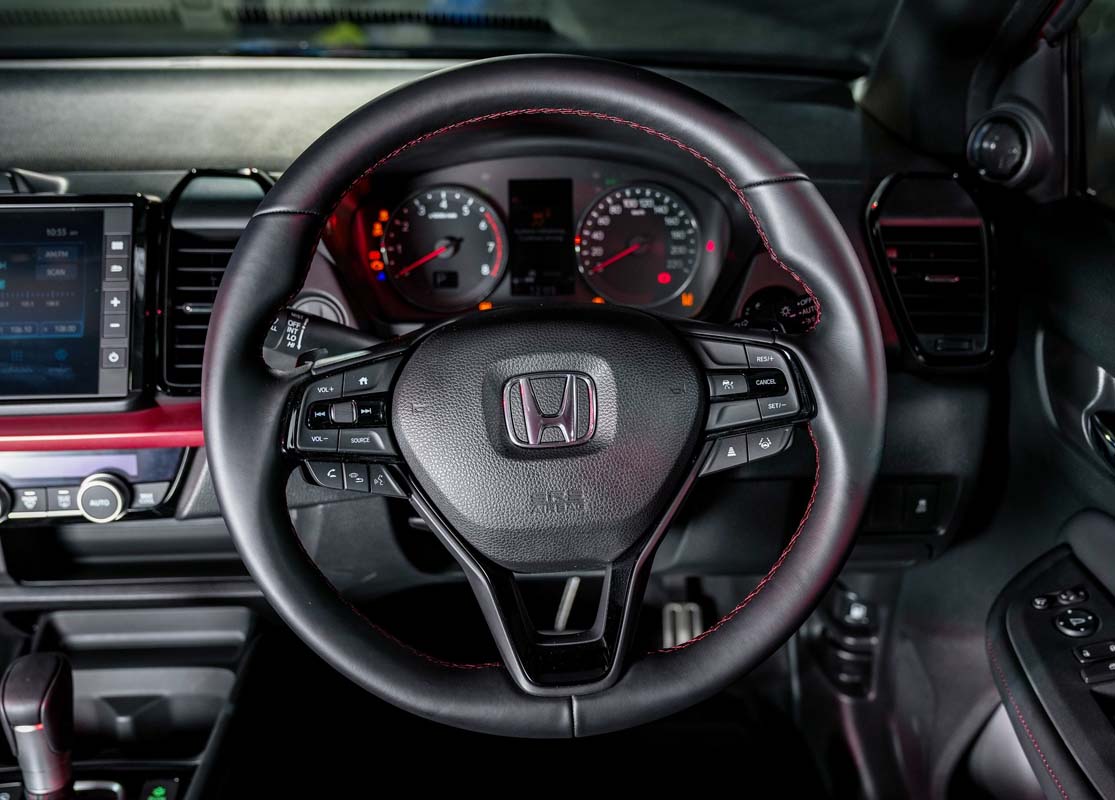 这一次原厂将为 City e:HEV RS 车型升级新的前后保险杠设计,其中前保险杠将会有黑色但尺寸略小的饰条,并且换成蜂窝式的水箱护罩,下方还会有造型更激进的前唇点缀,另外原厂将为它换上新的 16 寸 Dual Tone 双色轮圈,而在后保险杠则有鲨鱼鳍扰流器,为它带来更加出色的运动氛围,而在内饰的部分则暂时没有更多的细节。