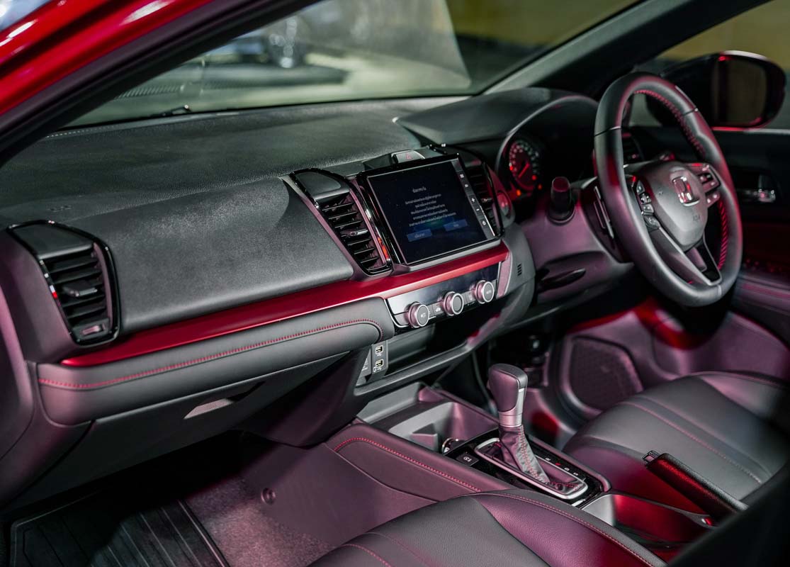 那上个星期原厂就有公布小改款车型的消息,这一次在小改款车型上,他们将会为 City e:HEV RS 车型换上新的前后保险杠设计,其中前保险杠将会有黑色但尺寸略小的饰条,并且换成蜂窝式的水箱护罩,下方还会有造型更激进的前唇点缀,另外原厂将为它换上新的 16 寸 Dual Tone 双色轮圈,而在后保险杠则有鲨鱼鳍扰流器,为它带来更加出色的运动氛围,而在内饰的部分则暂时没有更多的细节。