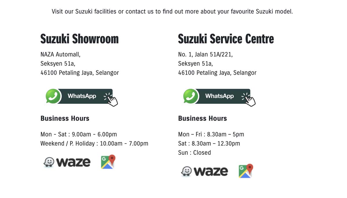 除了新车之外,之前规划的新展示厅也遥遥无期,目前仅有 Naza Auto Mall 的展示厅以及位于同样地点的维修中心而已。实际上 Suzuki 拥有非常多的新车在本地是很有竞争力的,其中就包括了 Ertiga、 Ignis 以及 Grand Vitara 等等,但是或许是策略性的问题所以这些车款都没有引进(实际上 Suzuki 在邻国市场表现依然非常不错)。