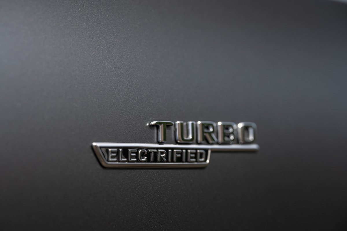 那和大家回顾一下这款车,在外观的部分,这款车和目前的 W206 C-Class 大致上是一样的,只不过新车换上了 AMG 家族式的 Panamericana 水箱护罩,还有更为运动化的保险杠设计以及双边四出的排气管,让它整体看起来更为运动化,而在车侧还有 TURBO ELECTRIFIED 字样,代表它有着来自 F1 的电子涡轮增压器技术加持。