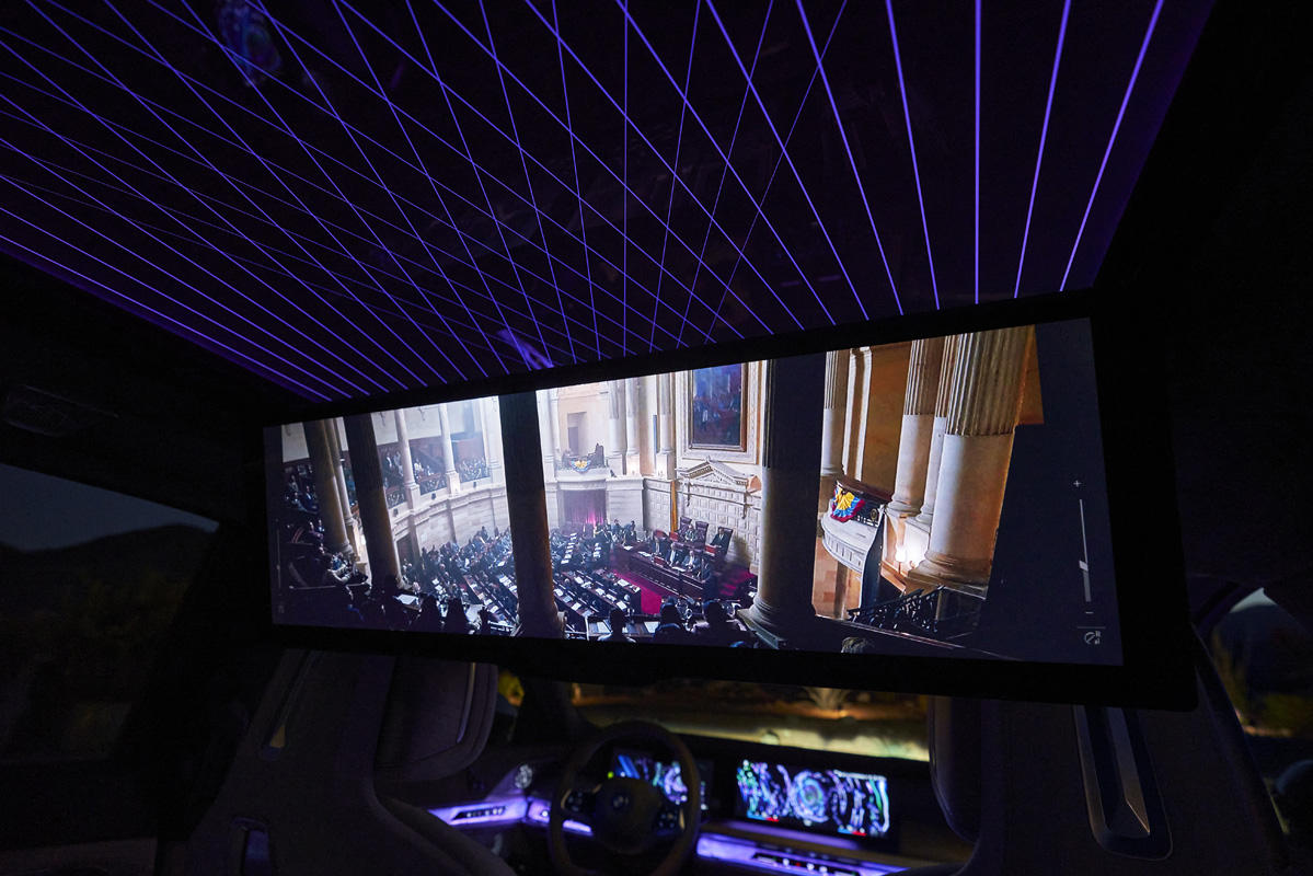 来到内饰的部分,是原厂最新世代的双联屏设计,有 12.3 寸全液晶仪表和 14.9 寸中控触屏主机,而且它的氛围灯被融入到饰板内,因此晚上点亮时的效果十分绚丽,不过作为一辆老板座驾,它的主要配备还是集中在后排,它的后排最显眼的就是那一个横置在上方的 31.3 寸 8K 显示屏,而且在后门还内置了 5.5 寸的触屏控制面板让你控制车内的功能,其余配置像是 39 个共 1,965W 的 Bowers & Wilkins 高级音响、Sky Lounge 全景天窗、按摩座椅、电动开启和关闭的车门等都可以在这款车上面,而且和外观一样也是可以选装,原厂为它提供了 4 种内装皮革颜色选择,而且全部是免费的,只要根据你的个人喜好选择就好。