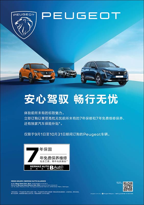 大马 Peugeot 近日宣布为旗下车款提供限时优惠,从今年 9 月 1 日至 10 月 31 限时为选购旗下 2008、3008 和 5008 任何一款新车的车主提供长达 7 年 Warranty 和 7 年 Free Service,如果你最近想买这几款车的话,千万不要错过啦。