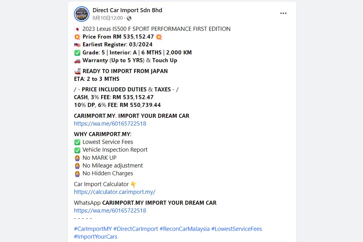 近日本地进口车商就从日本导入了一辆 Lexus IS 500 F SPORT Performance 到我国销售,这款车拥有罕见的 V8 自吸引擎,而且还是纯后轮驱动,并且还是限量 500 辆右驾车型的豪华性能车本地开价 RM 535,152 起。