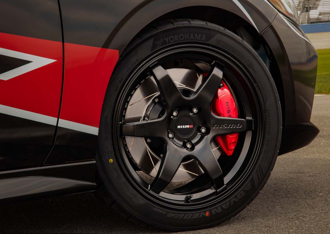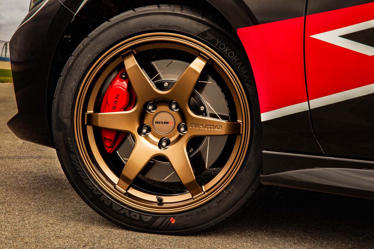 首先在外观上其实这款车并没有大改,主要是加了一套赛车拉花,用上了碳钎维后视镜外壳以及蓝色的多功能运动后视镜,同时为它换上 NISMO LM-RS6 18 寸轮圈配 Yokohama ADVAN Neova AD09 半热熔胎,里面搭载了来自于 Nissan Z 的刹车卡钳及 CZP 轻量化刹车盘,另外它还改装了 NISMO 避震器及防倾杆,可以给到车子更好的操控表现,并且内装的改变也并不大,依然是延续了量产车的设计,原厂主要是为它更换了 Recaro 赛车桶椅以及 NISMO GT 的排挡杆,给到你一个更具有战斗氛围的内装。