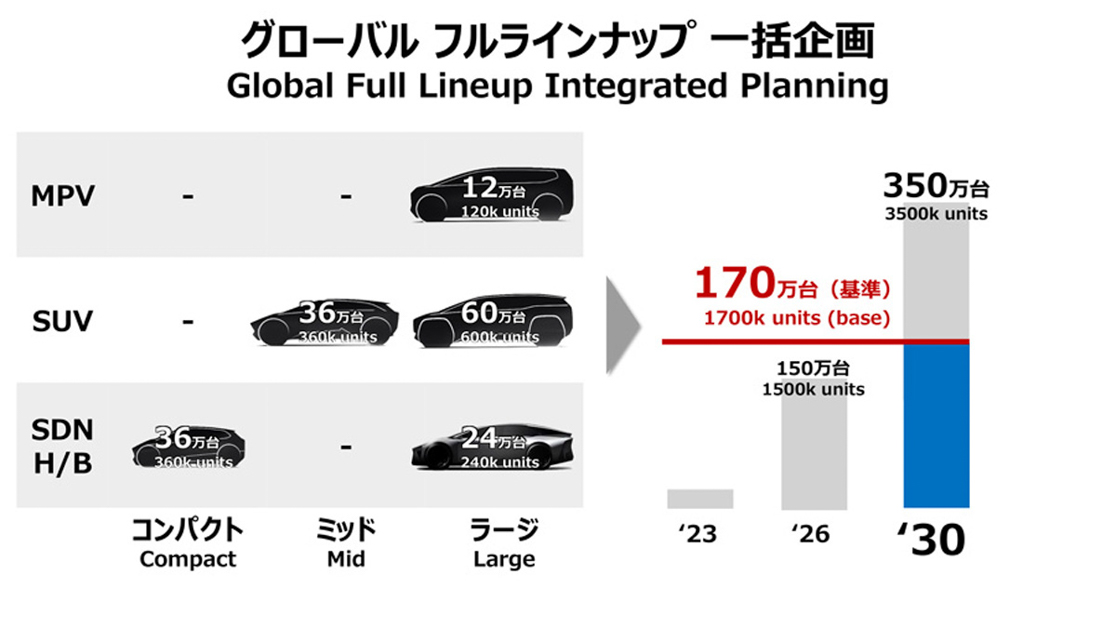 根据以下图片,Toyota 计划在 2026 年开始在全球范围内为旗下车型推出下一代的电动车,而且到了 2030 年时年他们预计将会有 3,500,000 辆电动车中的 1,700,000 辆是从全电动车工厂生产。