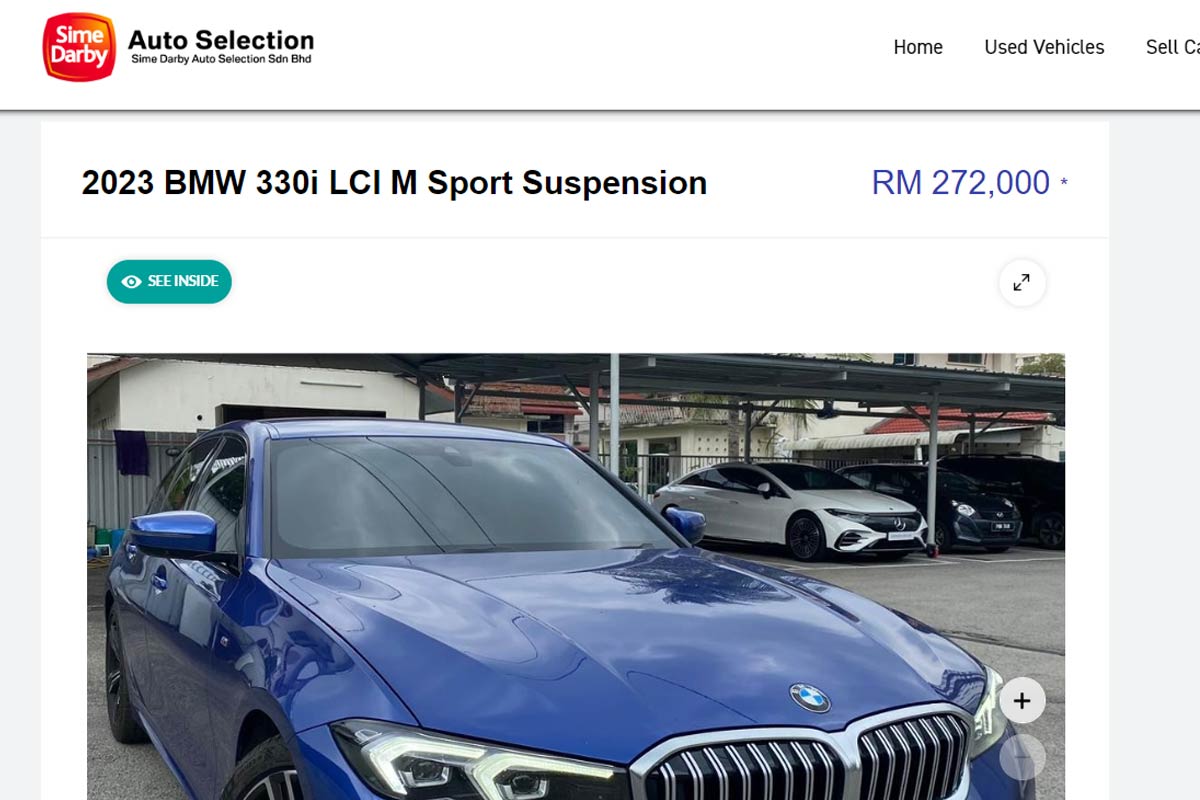 根据 Sime Darby Auto Selection 在网站上所释出的车源,这辆 330i M Sport 是注册于 2023 年 2 月 13 日的,也就是说到今天(10 月 15 日)为止也只是 8 个月多一点而已,并且它的里程也不高,仅行驶了 15,000 km 而已,不过对比刚在大马发布时 RM 317,800 起的售价,这款车仅开价 RM 272,000 起,也就是说直接便宜了 RM 45,800,算下来车价差不多是优惠了 15% 左右。