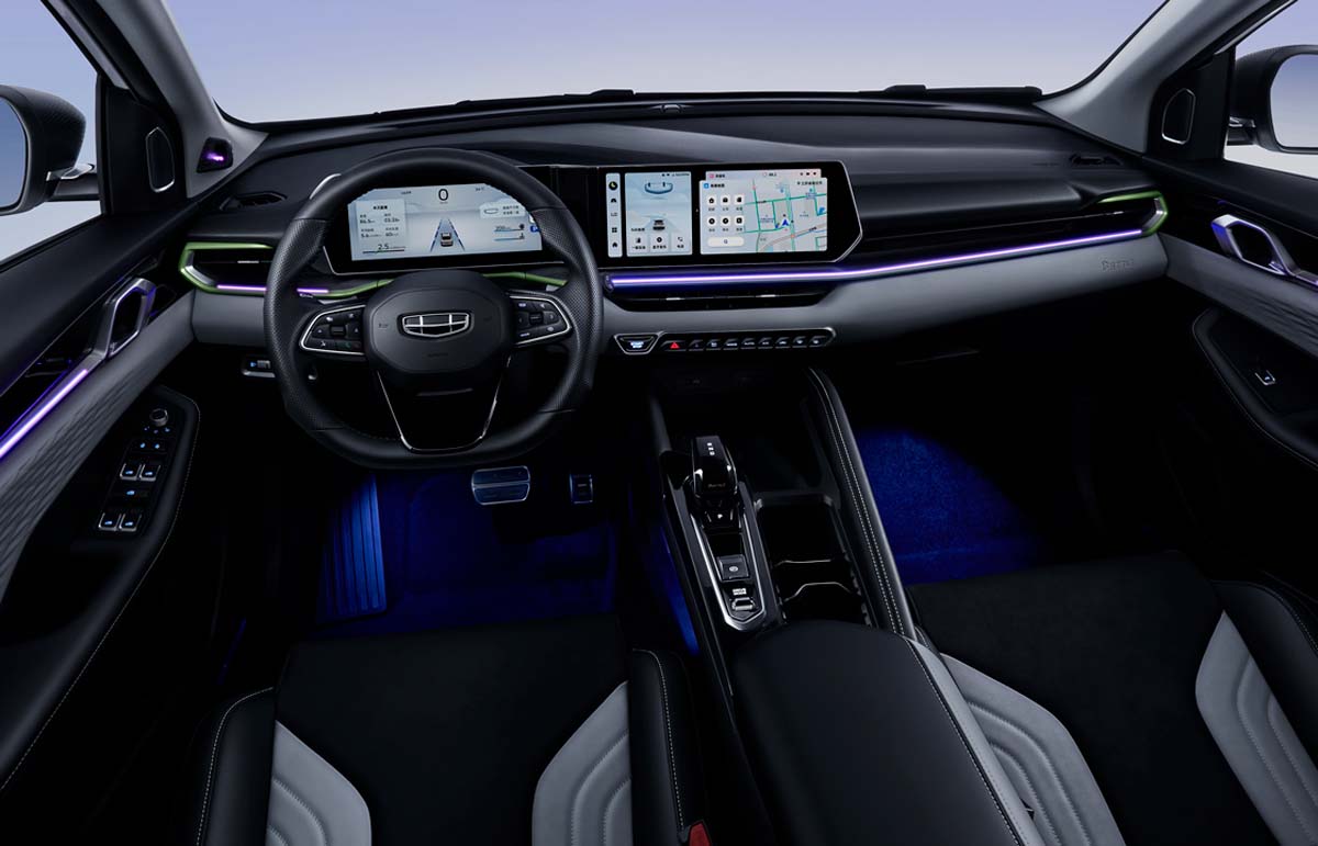 至于在内装的部分,在中国版的缤越 Cool 上它主要就是提升了车内的质感以及设计感,它换上了新的 12.3 寸彩色荧幕主机,里面内置了新的银河 OS 车载系统,据悉比起缤越以及 X50 使用的 GKUI 19 还要智能不少,不过预计本地版很可能并不会沿用这套系统,预计大马版可能会升级 X90 上那一个最新的车载主机,虽然依然不支援 Android Auto 和 Apple CarPlay 的功能,但是它将内置 6GB + 64GB 的记忆体,同时使用最新版本的 Atlas OS,使用上会更加地流畅,而这个主机将支援全新的 A-Store 功能,能够让车主自行下载应用程序,其中就包含了 Spotify 音乐串流软件等等,更方便你的使用。另外它还有非常多的潮流趋势的设计,其中就包括了流光溢彩律动氛围灯(具备开门迎宾和呼吸模式,可随驾驶模式、车速和音乐律动)、电子排挡杆、悬浮操控荧幕(和 BMW 的逻辑类似)等等。