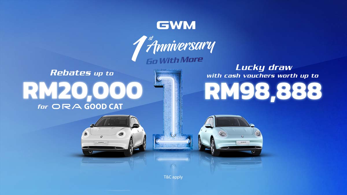 近日 GWM Malaysia 为庆祝成立一周年,特意推出多项活动回馈消费者对他们的支持,包括为旗下 Ora Good Cat 提供高达 RM20,000 优惠,同时和 ARTBOX 接连两个周末举办 #GoWithMore 活动,为幸运儿送出总值高达 RM98,888 的神秘礼。