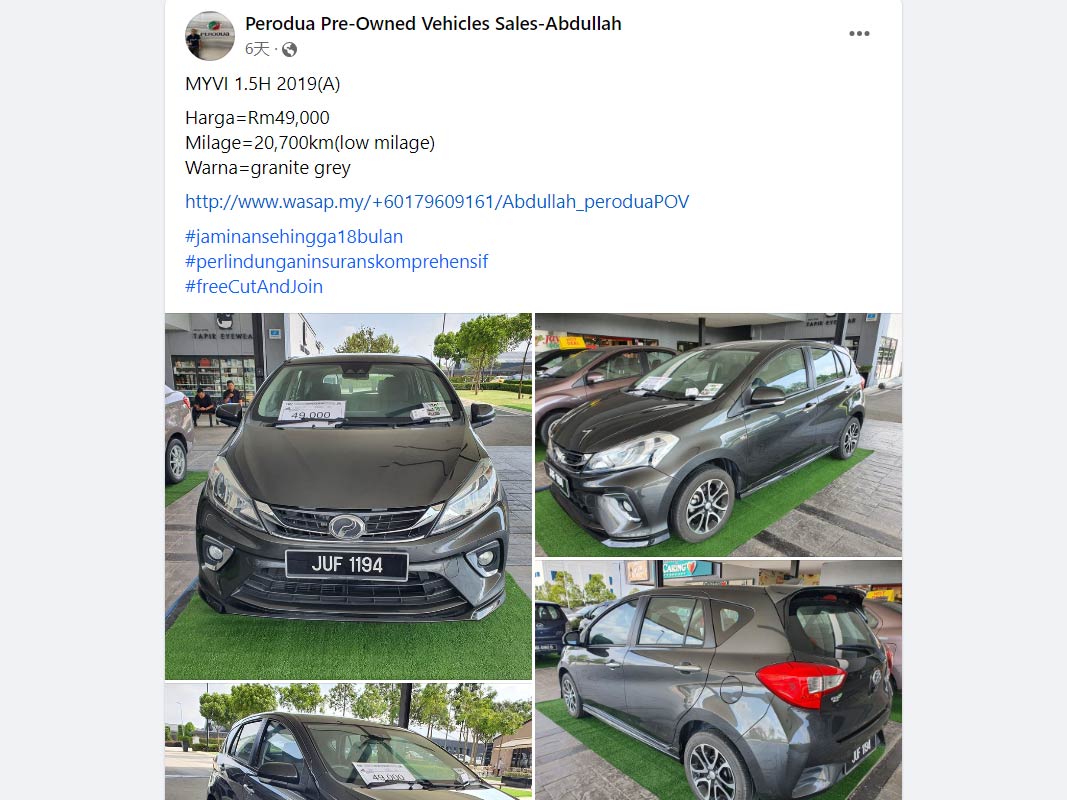 消息来源和图片翻摄:Perodua Pre-Owned Vehicles Sales-Abdullah