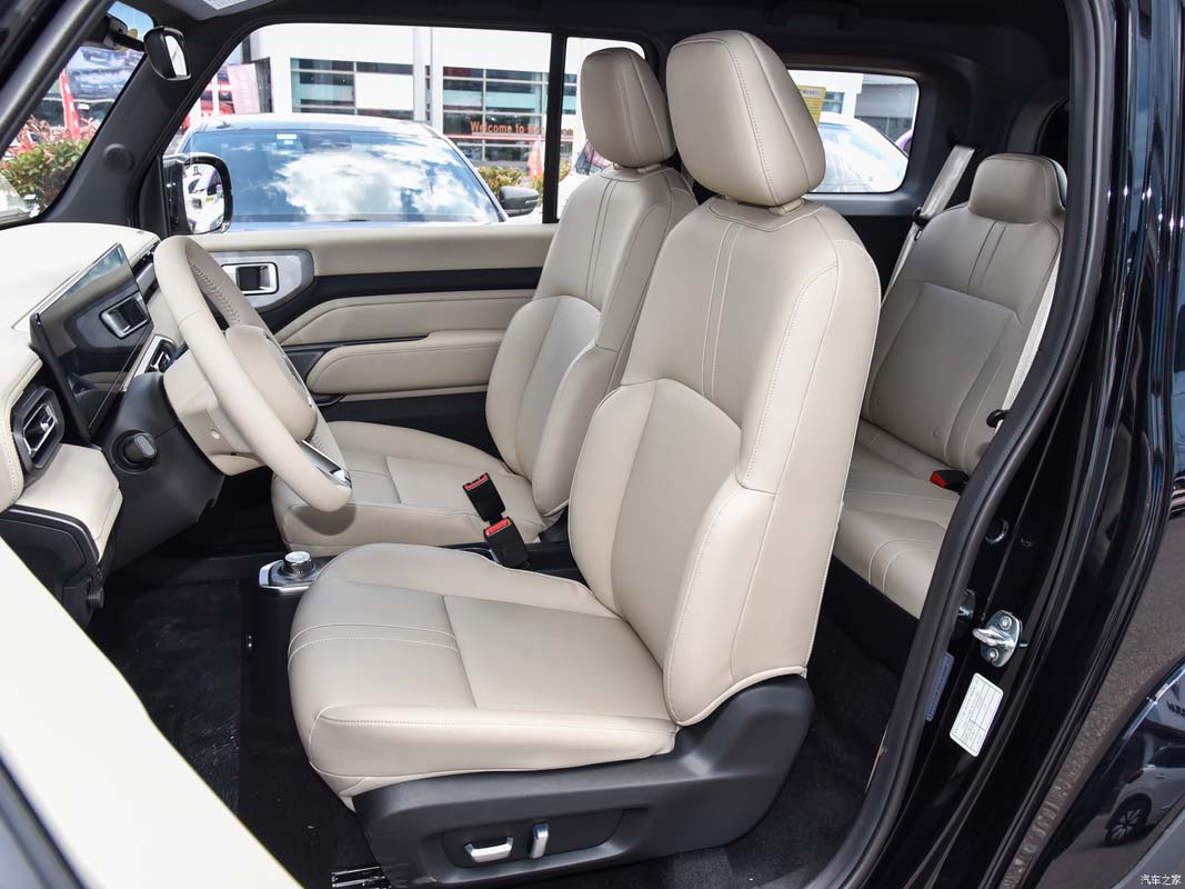 在内装的部分,这款车也延续了传统硬派越野车比较板正的内饰设计,可以看到它整个内饰都是方方正正的,另外它的内饰也有很多软材质的覆盖,看起来质感也相当出色,另外它还有 10.25 寸数位化仪表及 10.25 寸中控触屏主机组成的双联屏设计,加上有旋钮式换挡机构及电子手刹车等等,因此整个车内看起来并不会太阳春。