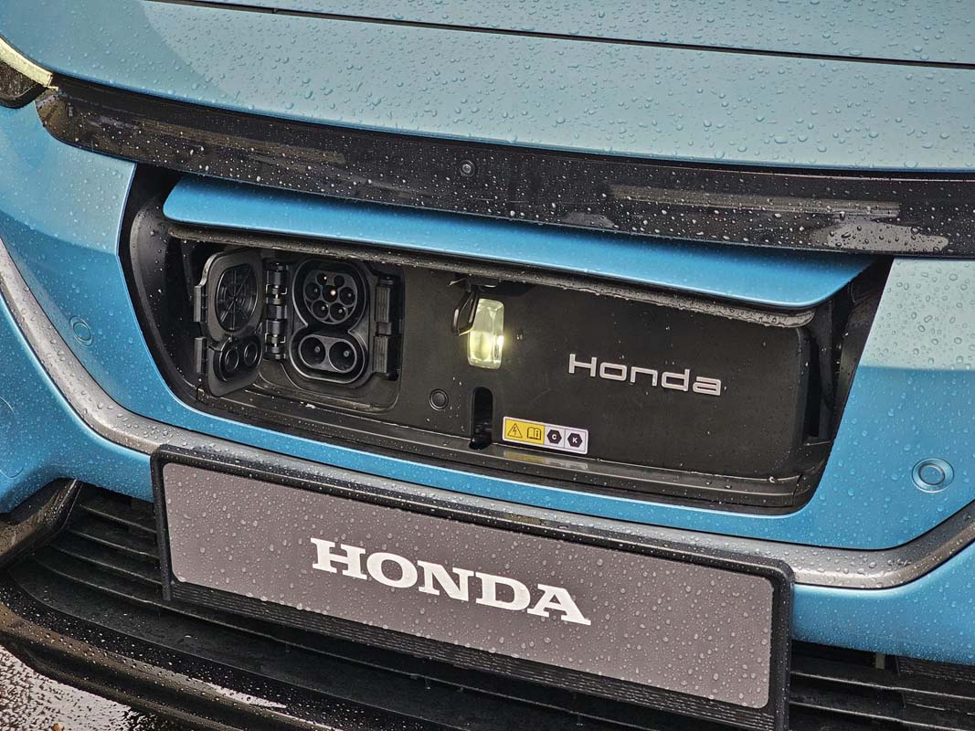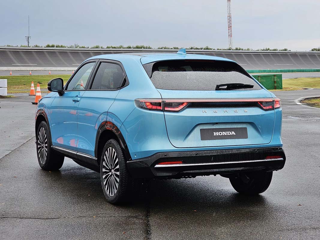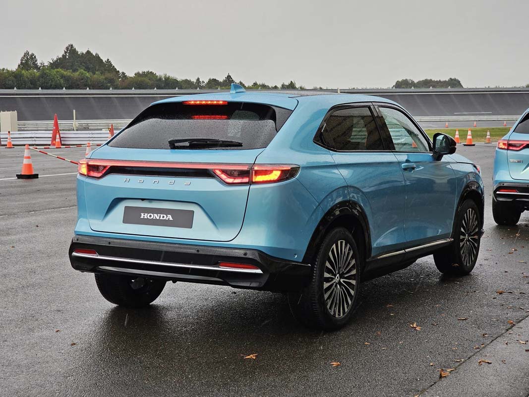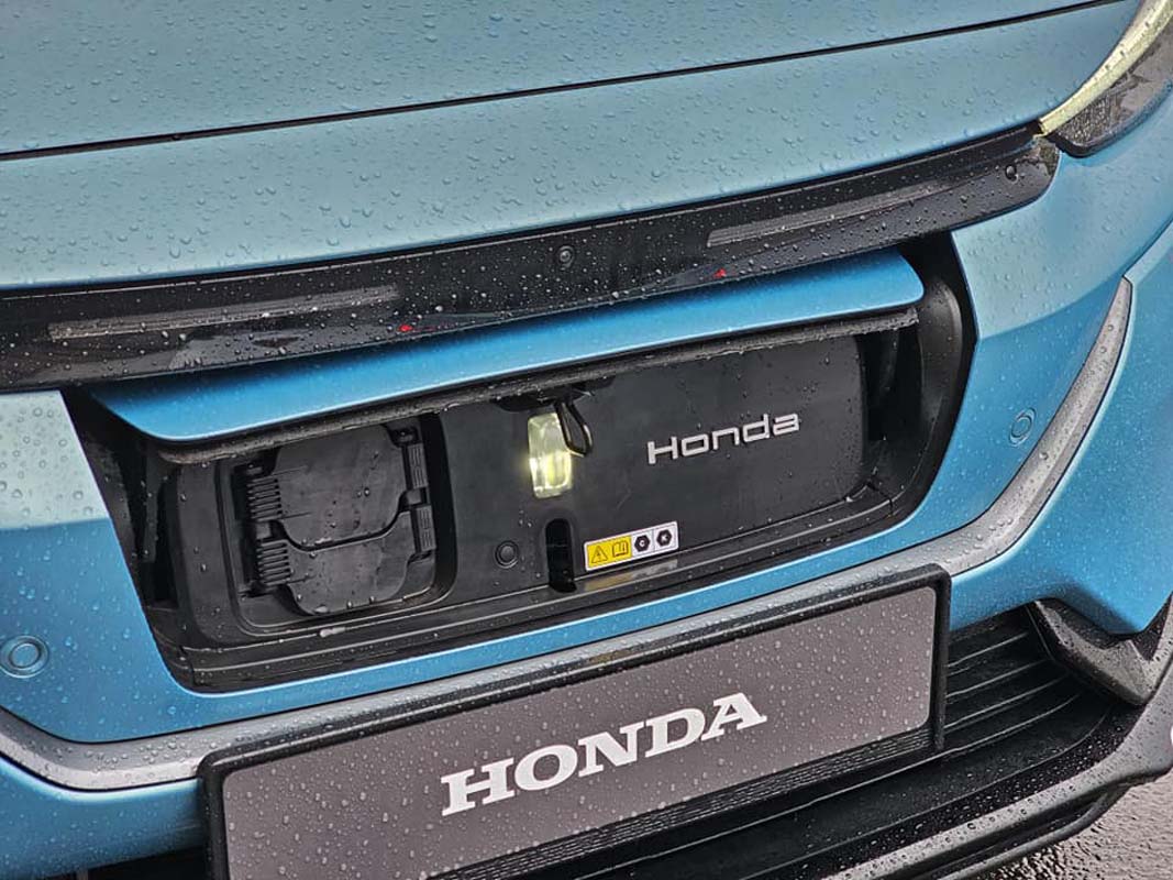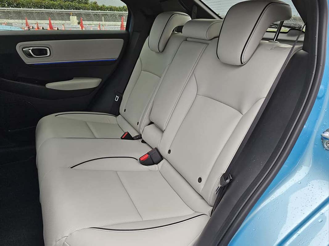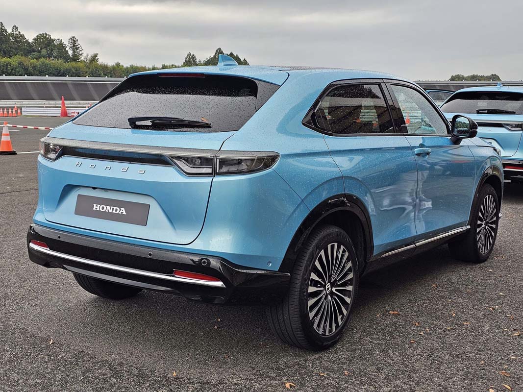 那在外观上这款车和 HR-V 高度类似,不过因为电动车不需要为引擎散热,加上为了更好的风阻系数,因此它的水箱护罩被换成了一整片的盖板,而它的充电口也被设置在这个盖板上,另外包括隐藏的后门把手等细节都获得保留,不过内燃机版本 HR-V 的贯穿式尾灯中间有厂徽,但是在纯电版本就没有,而是换成了 HONDA 的字样,至于其余细节则没有明显改变。