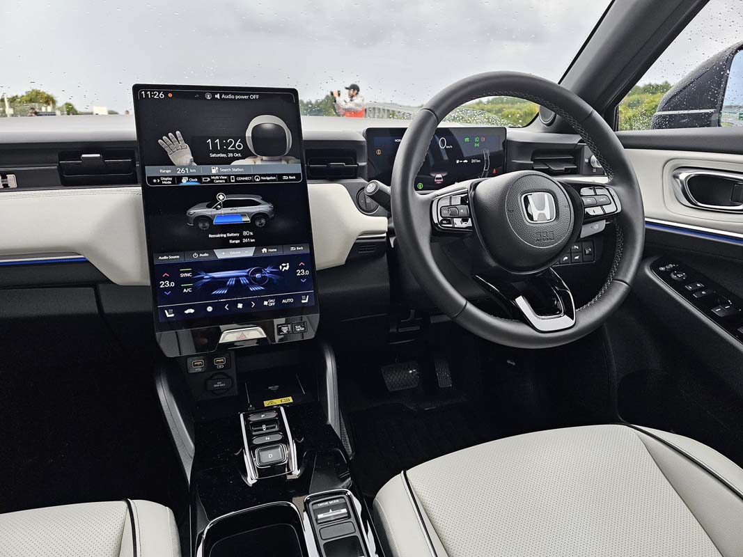 内装设计的部分,这款车最特别的就是和 Tesla 非常类似的大荧幕,这个主机除了一般的娱乐功能和 Android Auto / Apple Carplay 等等功能之外还整合了音响控制和冷气控制等等,就和目前市场大部分的电动车一样,除此之外新车会拥有更直观的全数位化仪表、电子换挡按键以及氛围灯设计,这些都是和 HR-V 有着巨大差异的地方。