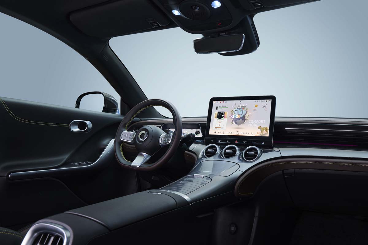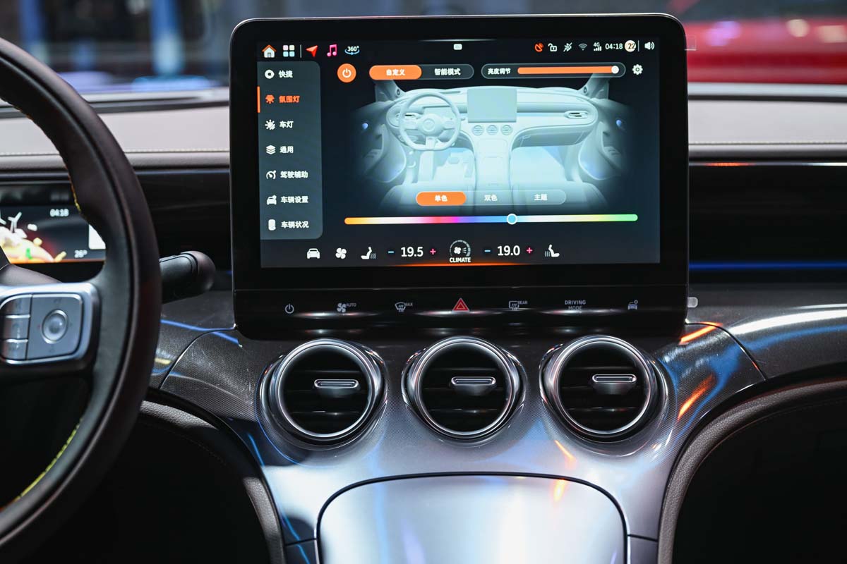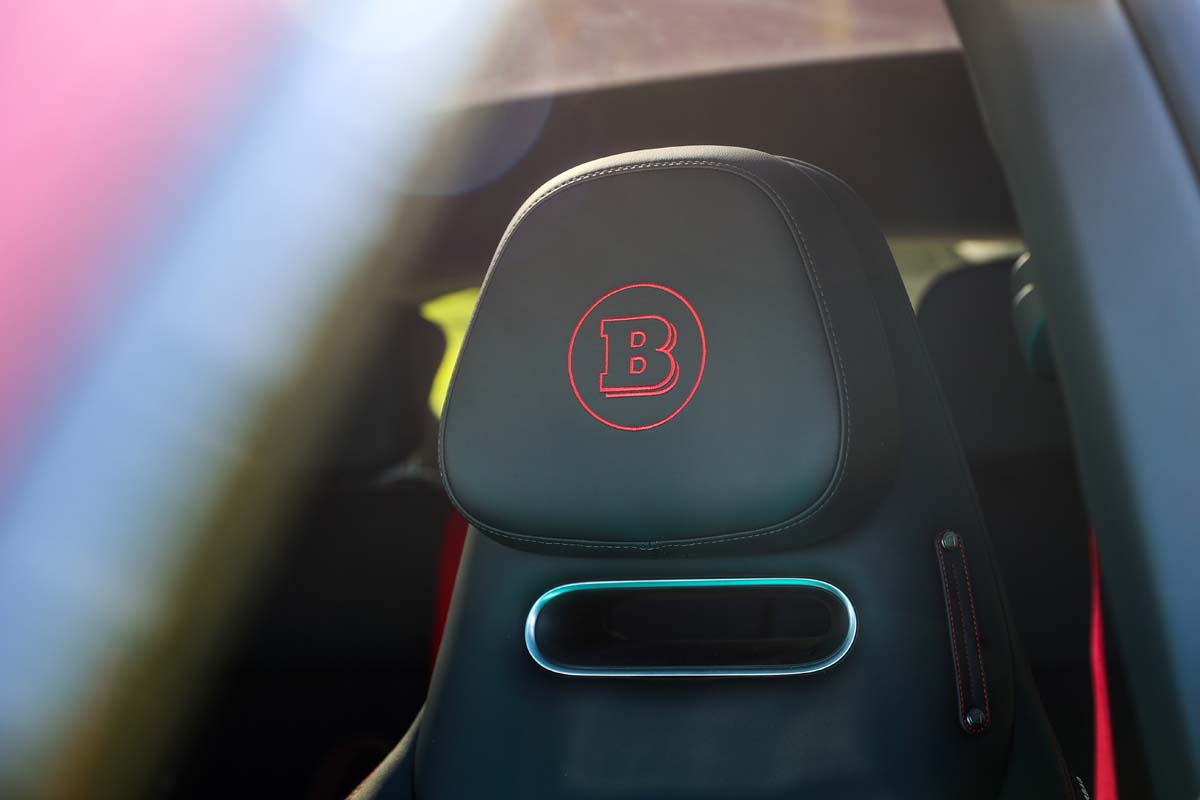 来到内饰的部分其实它和 #1 算是大同小异的,两者都是秉承了极简风设计,不过车内的质感依然有在线,可以看到整个车内其实没有太多的按键控制,大多数功能被集成在 12.8 寸的中控触屏主机内,并且它内置了 Snapdragon 8155 车载芯片,加上 12 GB RAM + 128 GB ROM 可以确保你的流畅使用,而且它支援无线 Android Auto 和 Apple CarPlay 功能,另外它还有 9.2 寸全液晶仪表、10 寸彩色抬头显示器和 13 个 Beats 高级音响等等的配备,而且它还和 Mercedes-Benz 一样使用怀挡的换挡方式,并且配备了炫目的 64 色氛围灯,相信可以吸引不少年轻人,而 BRABUS 版在原有的基础上为内装加入了更多的战斗氛围,包括了红色的线条点缀,黑色的运动座椅配红色安全带,同时在头枕那里有 BRABUS 的厂徽,让它整个车内看起来有着浓浓的战斗气息。