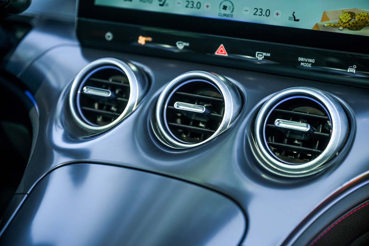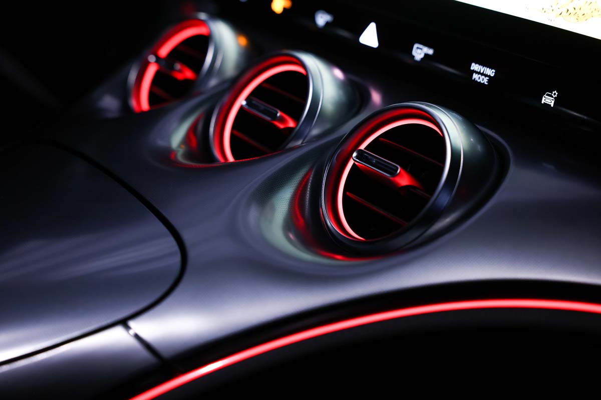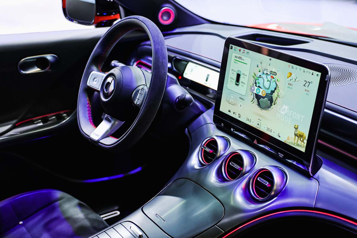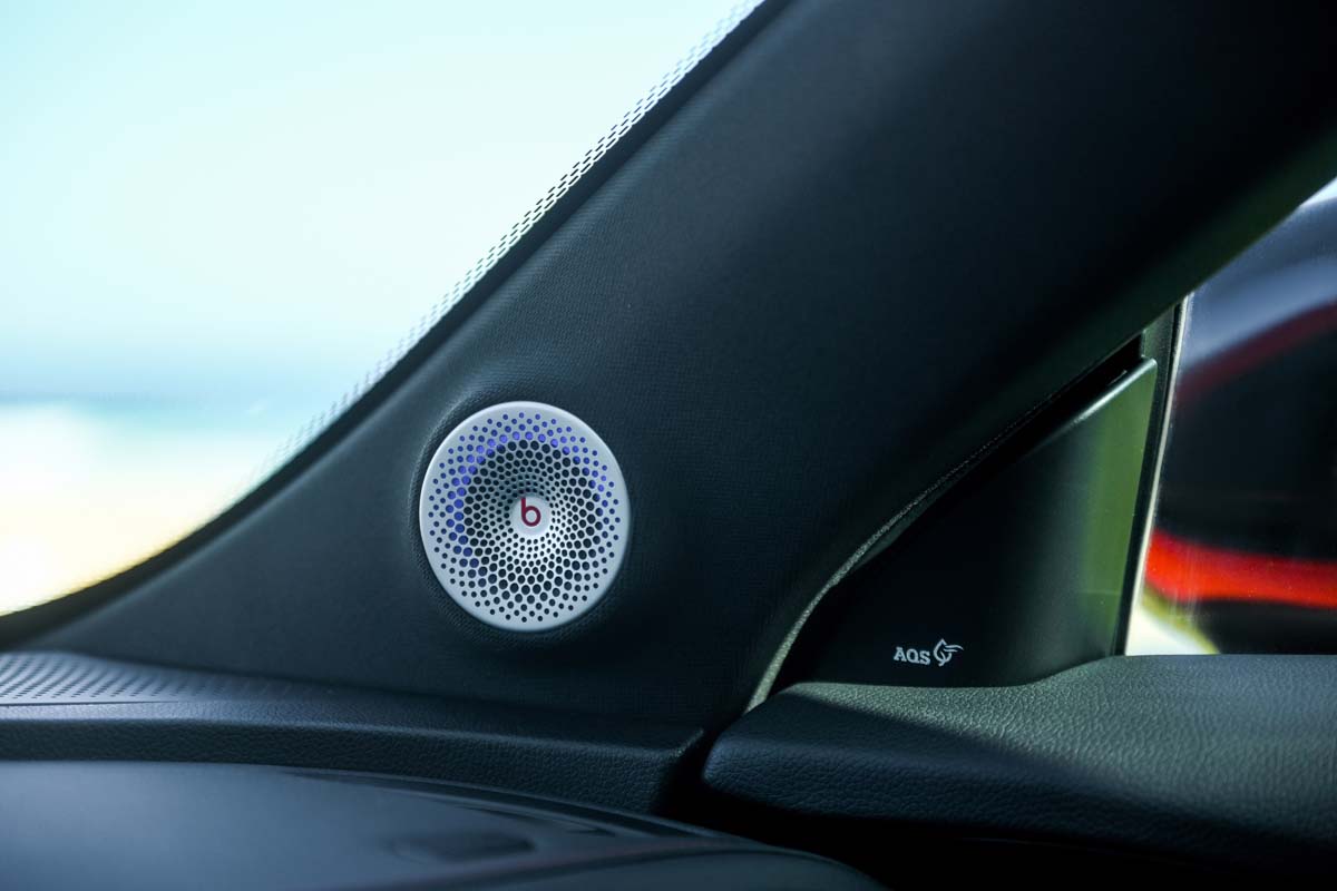 来到内饰的部分其实它和 #1 算是大同小异的,两者都是秉承了极简风设计,不过车内的质感依然有在线,可以看到整个车内其实没有太多的按键控制,大多数功能被集成在 12.8 寸的中控触屏主机内,并且它内置了 Snapdragon 8155 车载芯片,加上 12 GB RAM + 128 GB ROM 可以确保你的流畅使用,而且它支援无线 Android Auto 和 Apple CarPlay 功能,另外它还有 9.2 寸全液晶仪表、10 寸彩色抬头显示器和 13 个 Beats 高级音响等等的配备,而且它还和 Mercedes-Benz 一样使用怀挡的换挡方式,并且配备了炫目的 64 色氛围灯,相信可以吸引不少年轻人,而 BRABUS 版在原有的基础上为内装加入了更多的战斗氛围,包括了红色的线条点缀,黑色的运动座椅配红色安全带,同时在头枕那里有 BRABUS 的厂徽,让它整个车内看起来有着浓浓的战斗气息。