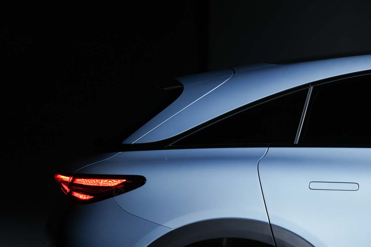 在外观上这款车延续了比较圆润可爱的家族式设计风格,这款车有着非常前卫动感的设计,可以看到它的前脸有贯穿式头灯,而在车侧这款车就有着隐藏式门把手及无框车门设计,同时它的 B 柱之后就直接有个大溜背的车尾,所以它算是一款 Coupe SUV,而隐藏门把及大溜背就让到它的风阻系数仅有 0.27 Cd 而已,另外这款车也配有炫目的贯穿式尾灯,而整个车尾设计看起来也非常圆润饱满。另外除了普通版之外,它的 BRABUS 性能版就有全套 BRABUS 专属运动空力套件,包括运动保险杠、前唇、侧裙、尾翼及后扰流器,整体看起来会更加运动化。