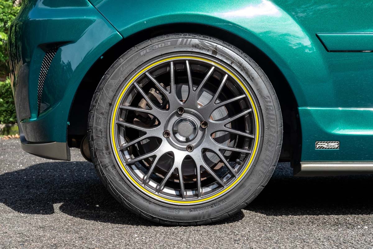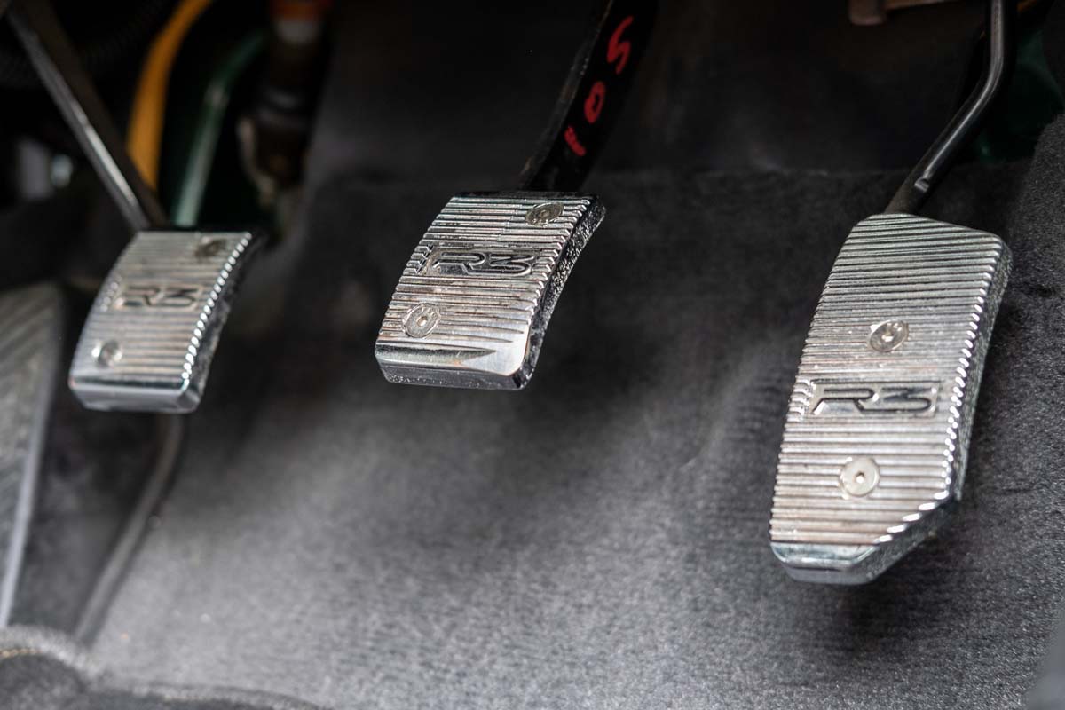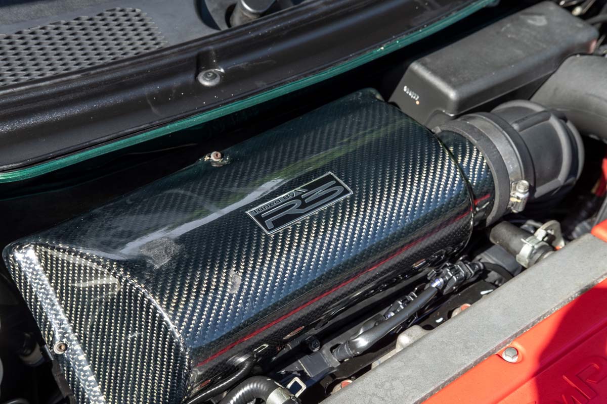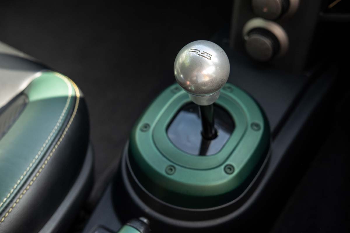 首先在外观上这款车仅有 British Racing Green 一个车漆配色,不过它有配上黄色的拉花点缀以营造出更好的运动感,而且它的车身有加入很多的碳钎维套件、像是前后保险杠、引擎盖及尾翼,而且这些套件并不是装饰品,而是真的能够提升一定下压力的,另外这款车使用的是 16 寸 Advantis 轮圈,而里面内置的是 AP Racing 刹车卡钳配划线刹车碟,带来更加出色的刹车表现,那这一整套的改装下来就帮它的车身重量成功减轻了 62 kg,车重仅 1,150 kg 而已,加上它配备了 Ohlins 可调式避震,加上有重新设定及调教的底盘,因此让这款车可以为你提供出色的驾驶乐趣。