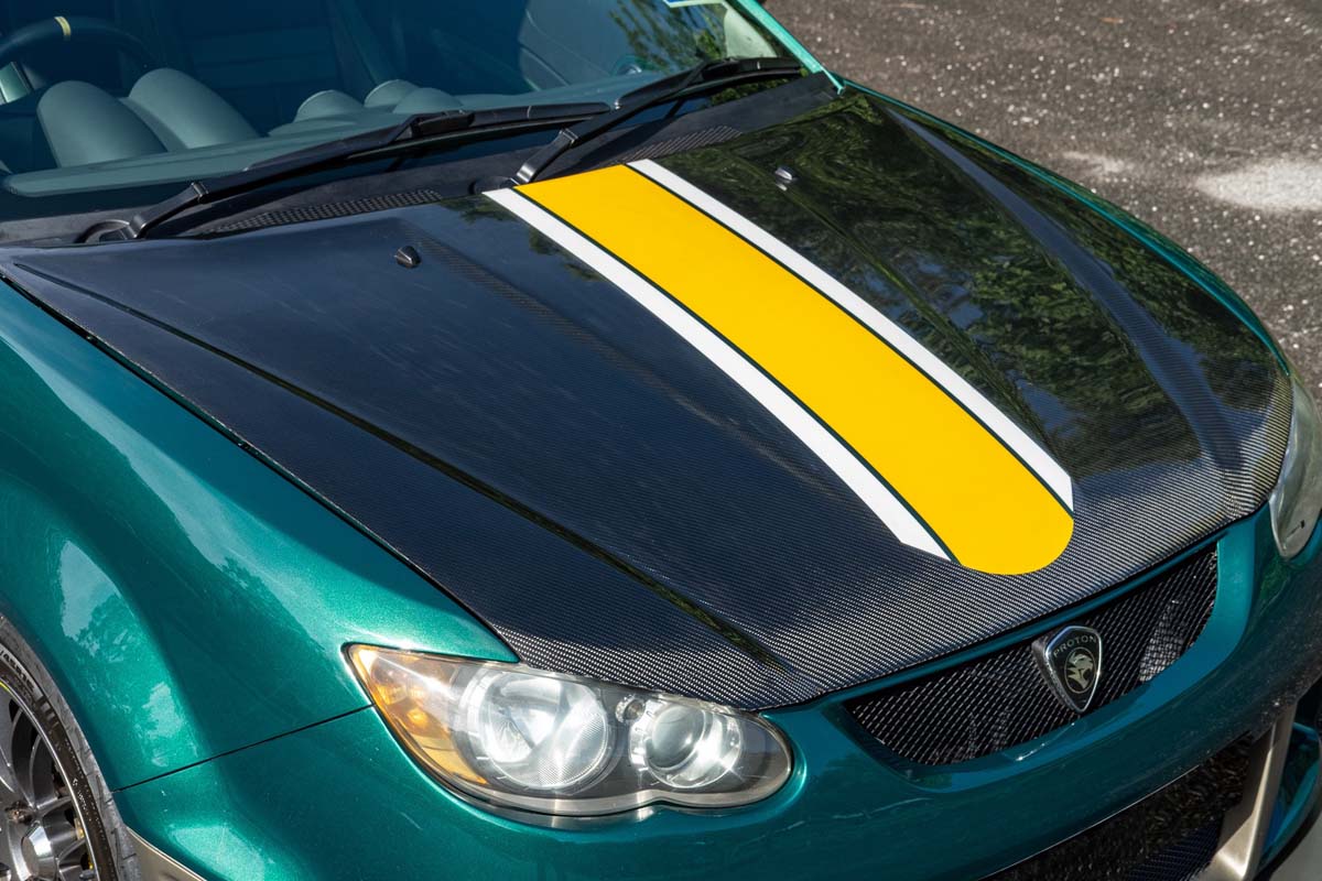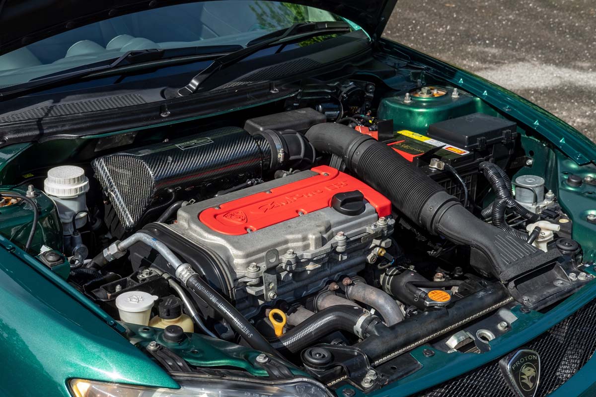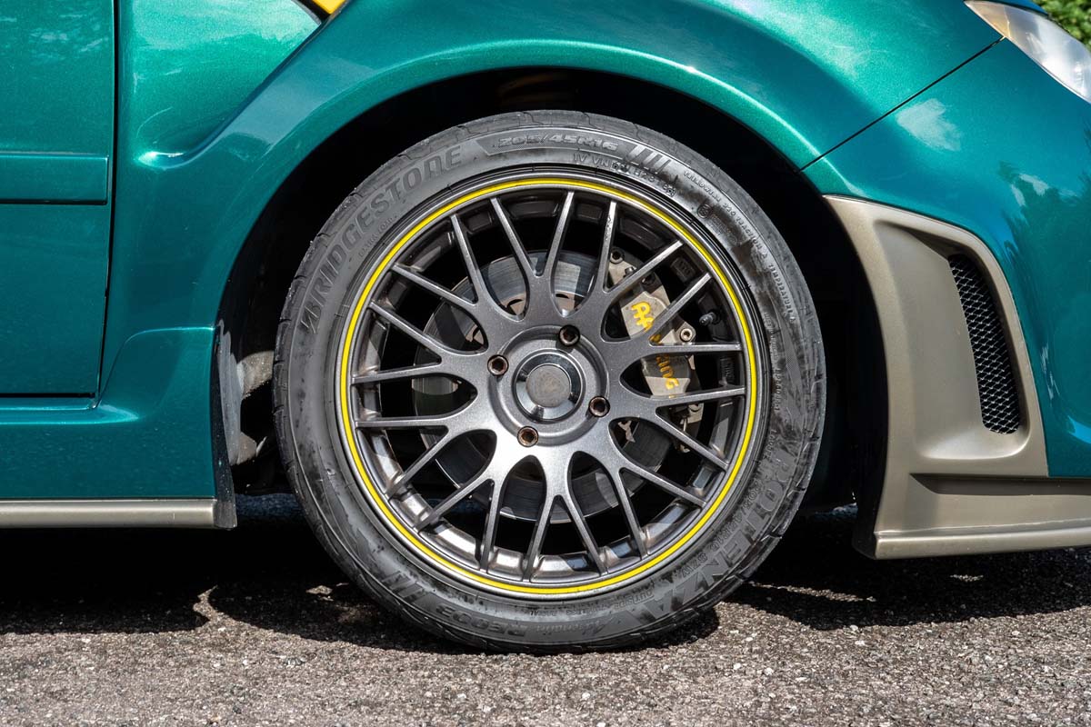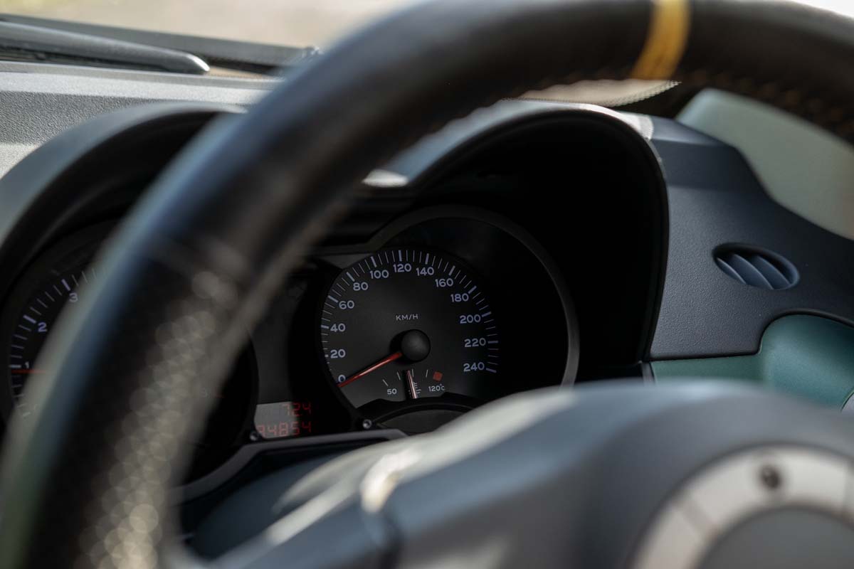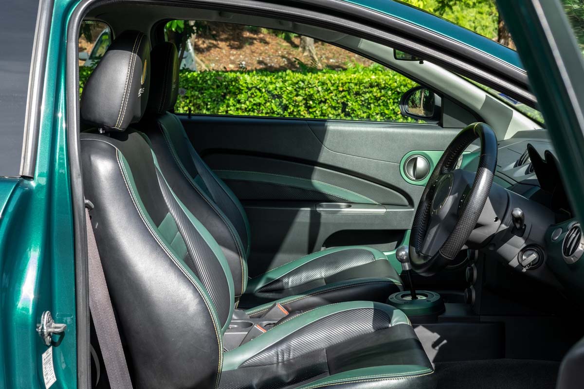 首先在外观上这款车仅有 British Racing Green 一个车漆配色,不过它有配上黄色的拉花点缀以营造出更好的运动感,而且它的车身有加入很多的碳钎维套件、像是前后保险杠、引擎盖及尾翼,而且这些套件并不是装饰品,而是真的能够提升一定下压力的,另外这款车使用的是 16 寸 Advantis 轮圈,而里面内置的是 AP Racing 刹车卡钳配划线刹车碟,带来更加出色的刹车表现,那这一整套的改装下来就帮它的车身重量成功减轻了 62 kg,车重仅 1,150 kg 而已,加上它配备了 Ohlins 可调式避震,加上有重新设定及调教的底盘,因此让这款车可以为你提供出色的驾驶乐趣。