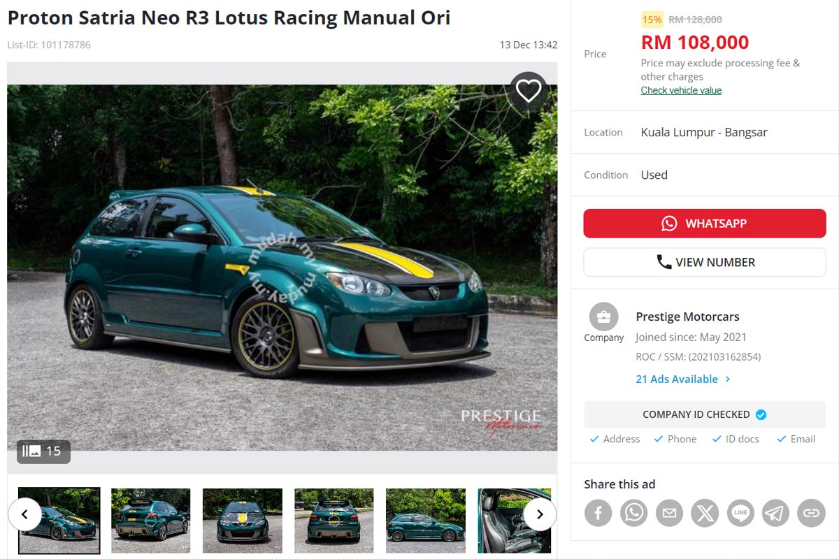超稀有 Proton Satria Neo R3 Lotus Racing 寻找新主人,全球限量 25 辆,现开价 RM 108,000 即可入手。
