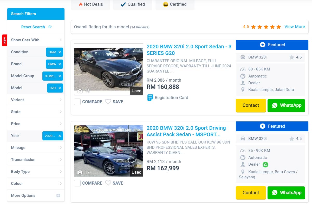 G20 世代的 320i 是在 2020 年登陆大马市场的,当年新车在我国开价 RM 243,800 起跳,而来到今天时隔 3 年,目前这款车在二手市场上 RM 165,000 左右已经有不少车源可以选择了(最低 RM 160,888 起),这对比当年的新车价便宜了 32% 左右,重点是这款车的车龄不高,因此你买到之后也依然可以享有一段时间原厂保固,不需要担心有什么东西突然坏了需要自掏腰包,因此这款车还是相当值得考虑的。