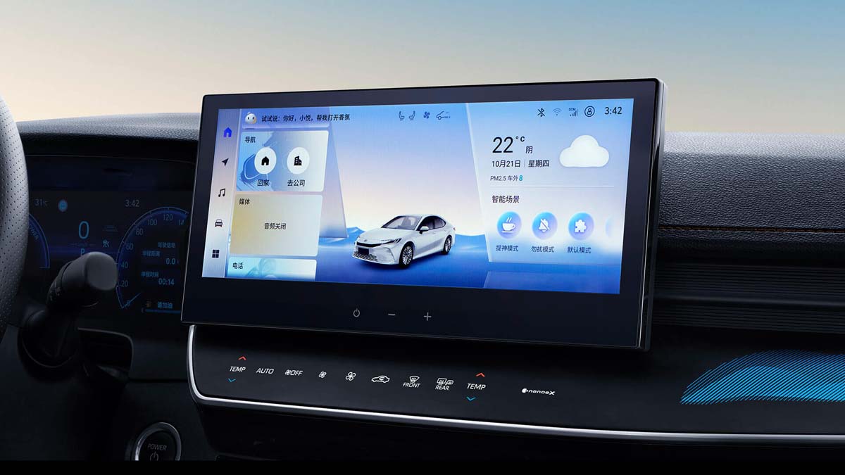 初次之外, Toyota 也重新设计了中国版本 Camry 的内装设计,整体风格和北美版本相似但是却采用了对称式内装设计,并且具备大尺寸荧幕+数位化仪表,而大尺寸荧幕也采用了主流的 Snapdragon 8155 处理器,虽然不是最新型号但是其整体性能依旧不俗,可以满足中国市场对于智能主机的要求,甚至还支持3D面容解锁等等功能,值得一提的是目前有传闻东南亚版本的 Camry 也会采用和中国一样的内装设计。
