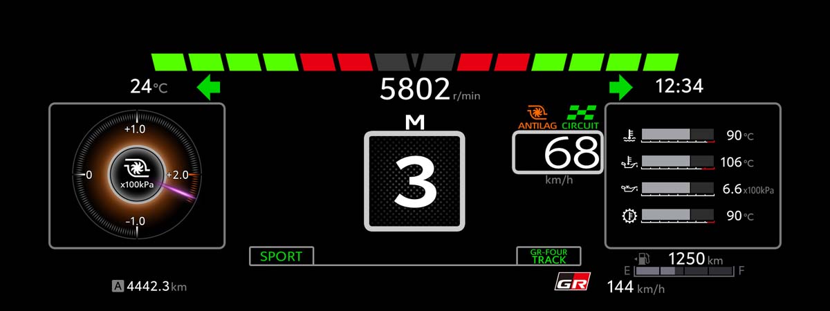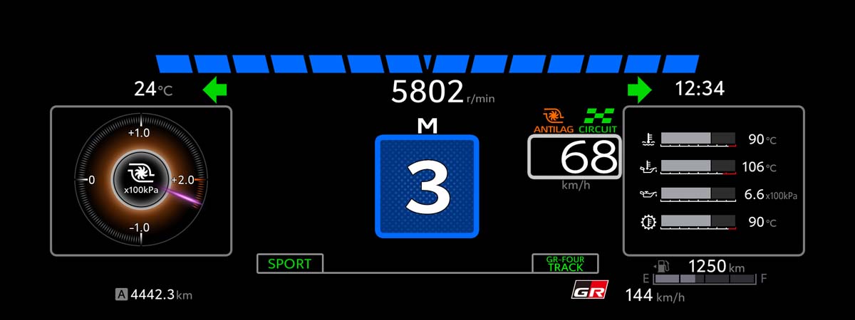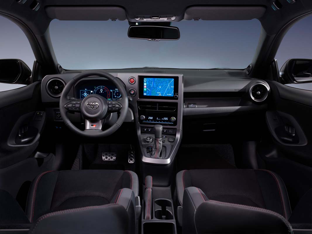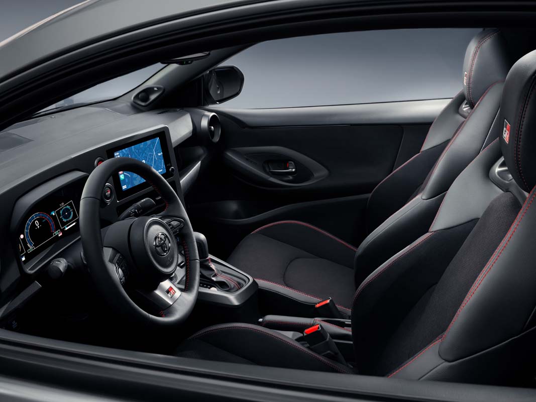 来到内饰的部分就可以看到它有着比较大的改进,其中可以看到整个中控台经过重新设计,现在它是微微向驾驶者倾斜 15°,让你不管是激烈驾驶还是日常使用都能轻松够到所需的按键,另外原厂也针对驾驶坐姿及挡把的设计进行调整,可以给到你更加合适及舒适的坐姿,另外它还新增了 12.3 寸全液晶仪表,而这个仪表也是经过 GAZOO Racing 团队在赛事中进行调教的,一切的显示布局都可以让你把所需了解的行车资讯一目了然,帮助你在赛道中取得更好的成绩。