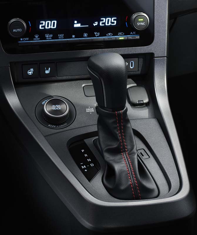 另外虽然这款车依然搭载代号 G16E-GTS 的 1.6L 三缸涡轮增压引擎,不过原厂就重新为引擎进行调教,让它的动力提升至最大马力表现 300 Hp,峰值扭力表现 400 Nm,对比之前的 268 Hp + 370 Nm 分别提升了 32 Hp 及 30 Nm,不同于之前仅有 6 速手排变速箱的选项,这一次原厂为它新增了全新开发的 8 速 GAZOO Racing DAT 自排变速箱(Direct Automatic Transmission),原厂宣称这具变速箱是专为激烈驾驶打造,而且它经过 TGR 团队在 WRC 拉力赛中的测试,并且在不同的驾驶模式中它可以有不同的特性,其中在 ECO 模式就很好地兼顾了舒适性,而 NORMAL 及 SPORT 模式就会有相对激进的换挡,另外这款车也新增了 Circuit Mode 赛道模式,它不仅可以让大大减少 Turbo Lag 的反应,同时也能在赛道内解开限速,并且整体还会更加硬核(不能在普通公路打开),而根据介绍它将可以让普通人也轻松享受驾驶 GR Yaris 在赛道驰骋的乐趣。