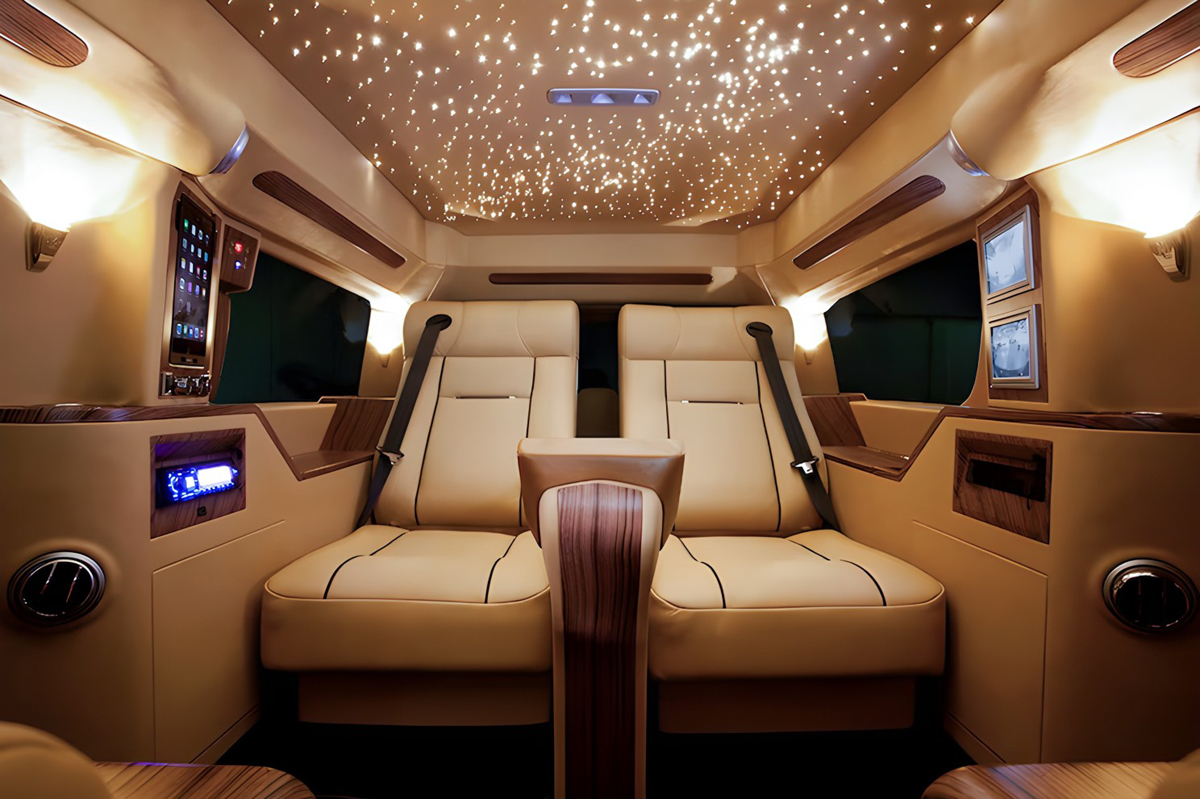 先来介绍大家比较熟悉的 Yukon Denali XL,因为柔佛苏丹伊布拉欣陛下的护卫队中就有同款车型,AIG 一共为这款车推出了 CEO、Chairman 及 President 三个车型,其中 CEO 车型就有类似于私人飞机的豪华内饰,他们拆除了后排原本的座椅,换上了 Maybach 式的头等舱座椅,并且加高了车顶让车内乘客有更宽裕的空间,并且它还有很多可额外客制化的功能,而 Chairman 则是加入了防弹装甲、防弹玻璃及防爆胎,可以给你全方位的保护,至于 President 车型就是结合了两者的功能。