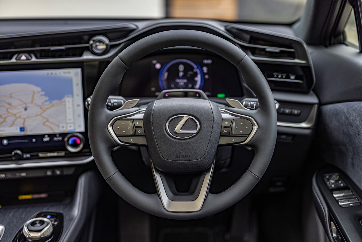 来到内饰的部分,这款车使用了原厂最新的设计语言,通过全液晶仪表,集成大多数按键控制功能的触屏主机营造出很好的简洁和高科技啊氛围,同时加入 Hey Lexus 语音唤醒控制功能,当然 Apple CarPlay 和 Android Auto 等等的连接也能在这款车上看到,另外在国外这款车配备了非常惊艳,名为 One Motion Grip 的飞机操控杆式的方向盘,经过工程师调教,你的双手保持在方向盘三九点,将方向盘旋转 300° 就能完成 U-Turn,不过国外需要要额外选配 2,400 欧元(约 RM 12,434)才有这个新设计的方向盘,至于我国则暂时不知道会否导入。