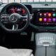 来到内饰可谓是相当夸张,因为它用上了和 EQS 一样最新的 MBUX Hyperscreen 三联屏设计,屏幕的上方是贯穿式的冷气出风口设计,加上前座从门板到中控台都有上下两层的氛围灯,让整个内装变得非常地科幻,就好像置身在太空飞船内一样,而且它的主机功能也很强大,可以让你使用 TikTok,玩游戏,通过车内的自拍镜头使用 Zoom 和 Webex 等应用参与视频会议或是拍照,而且只要你提前设定好,车子可以根据环境温度自动调整车内的设置,比如太冷自动打开座椅加热,将氛围灯调至较为温暖的颜色等等,相当智能和有仪式感。