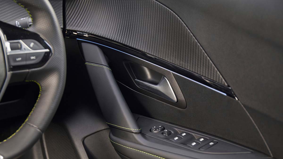 至于内装的部分,这款车采用了家族的 i-Cockpit 设计理念,以大量的直线条和折角设计而成的仪表板上还可以看到悬浮式的中控大荧幕以及 Peugeot 近期招牌的悬浮式液晶仪表盘,而中控台上的按键也大量简化,同时还可以看到强调运动化的碳纤维饰板,整体内饰可以用科技感十足来形容。而同样的,新一代的 208 也一样备有和其它家族成员一样的迷你方向盘设计,以及酷似飞机操纵杆的电子排挡杆,非常地炫酷。