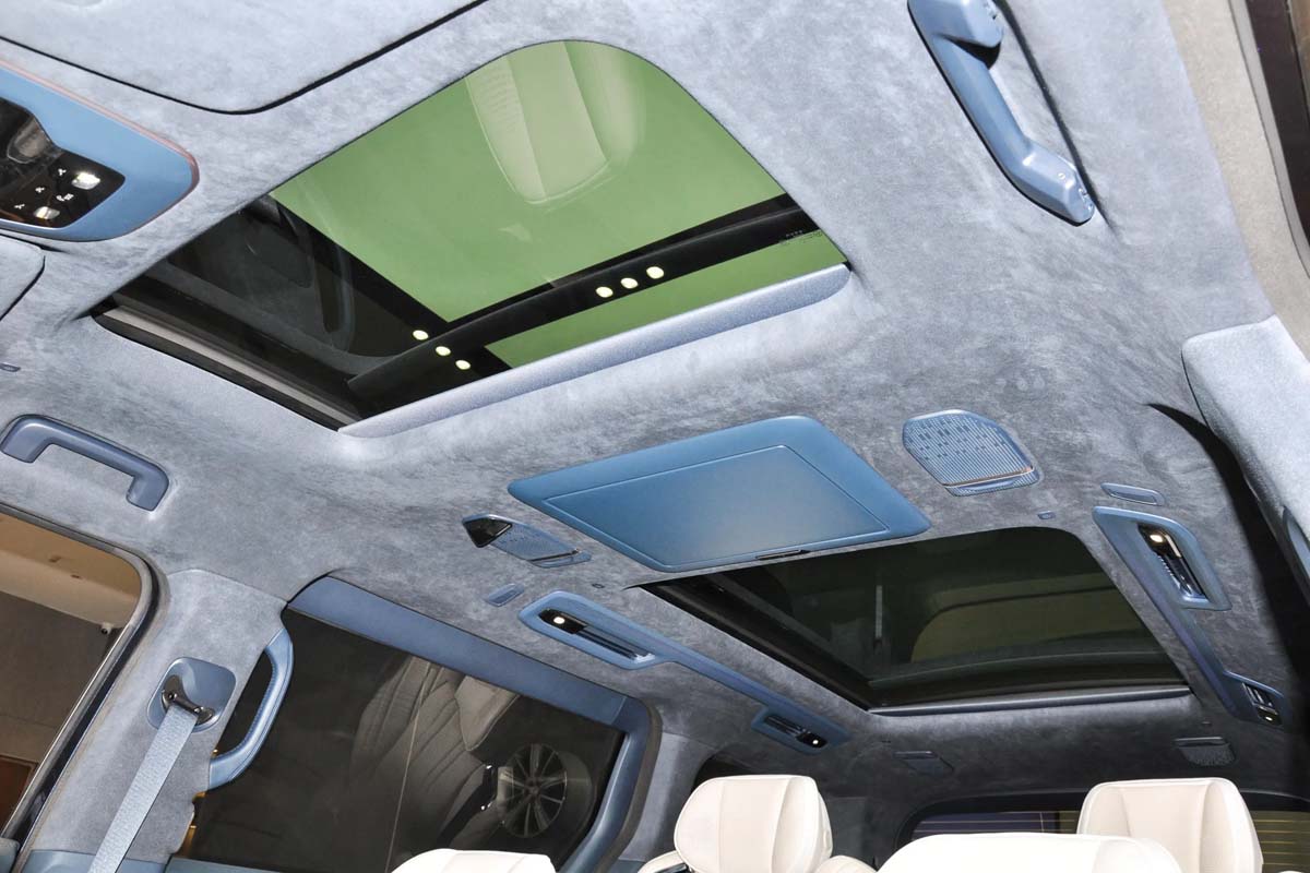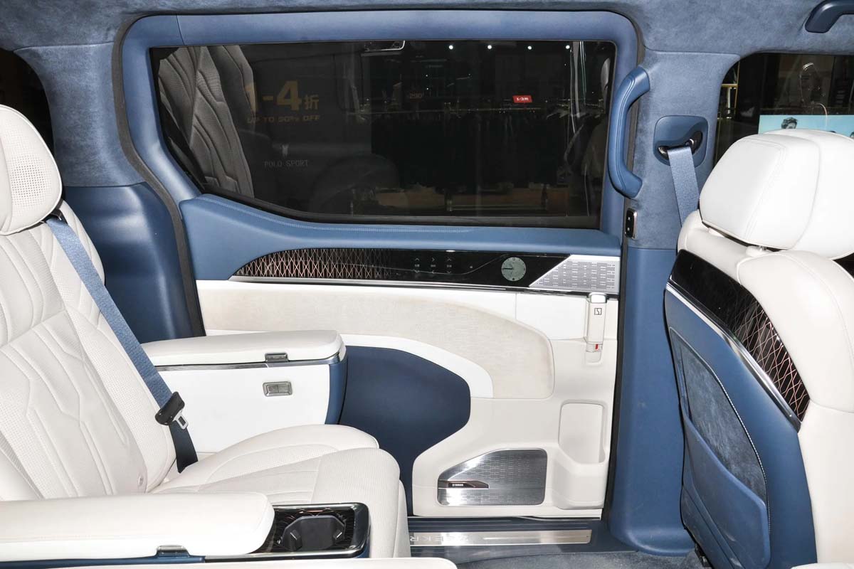 内饰一般上的全液晶仪表和中控触屏主机一定是有的,不过前排不是它的重点,因为作为主打全家出行的奶爸座驾,它的后排有着非常丰富的配备,在车顶有一个 15.6 寸的显示屏可以提供后排很好的娱乐效果,另外在门边除了电动开启和关闭外,还加入一个小屏幕让你可以控制冷气、窗口以及遮阳帘,不仅好看,还很有科技感。