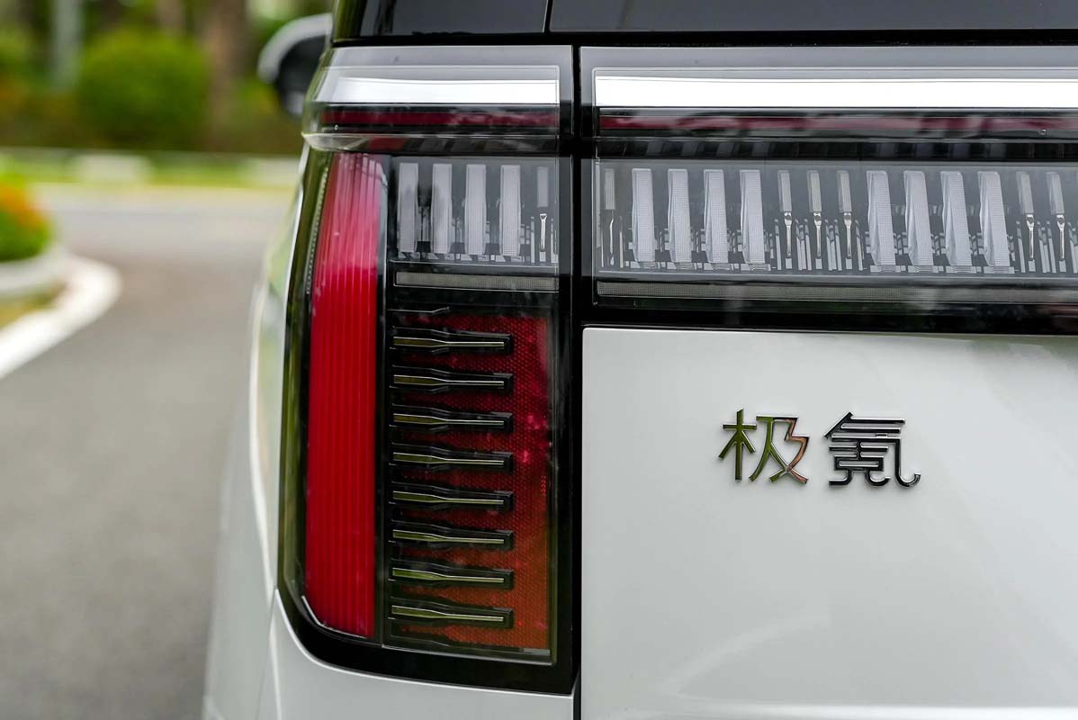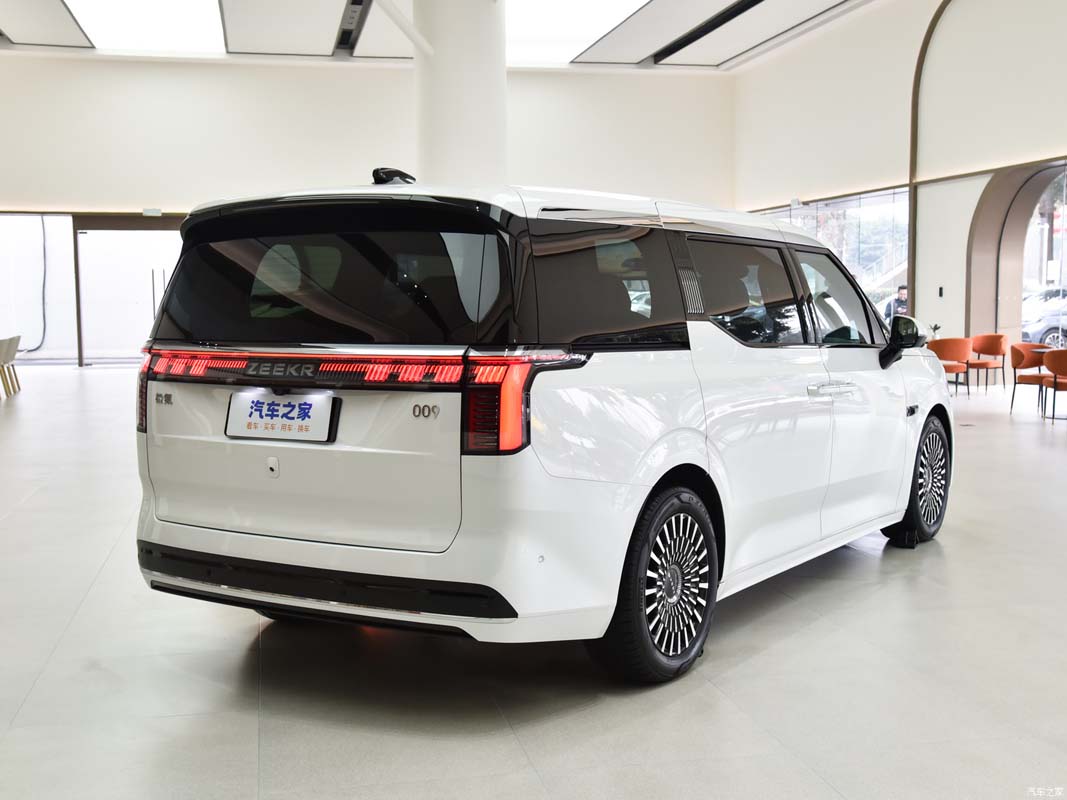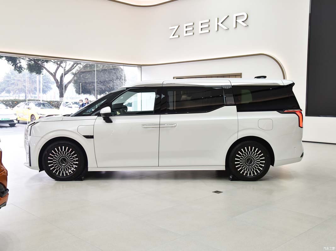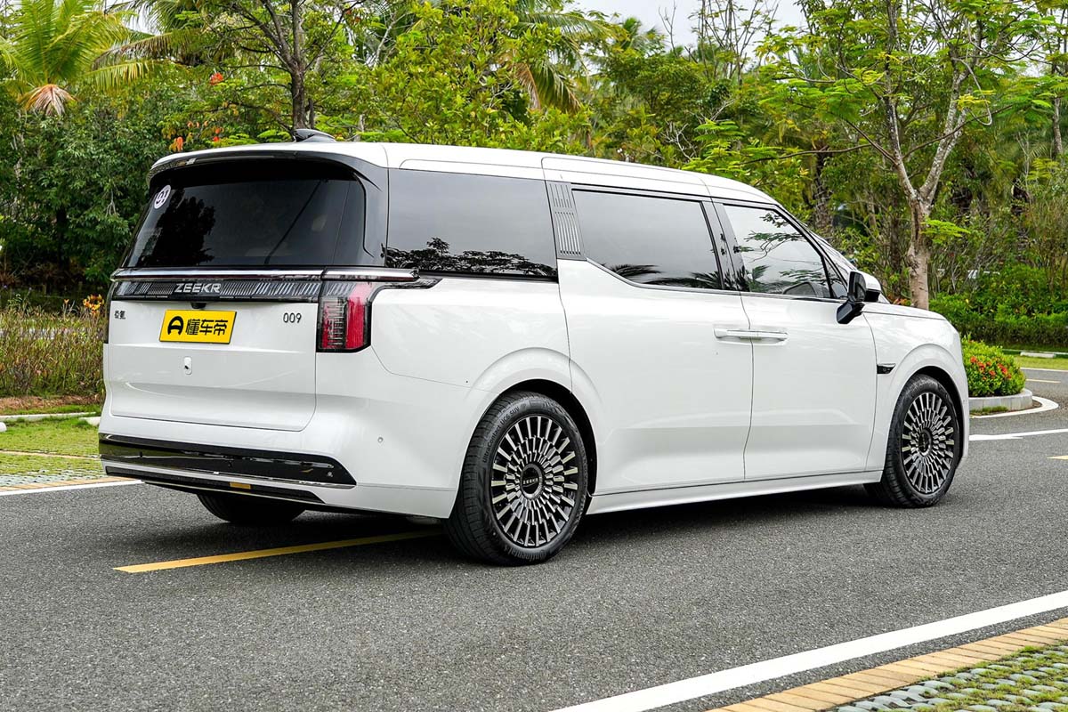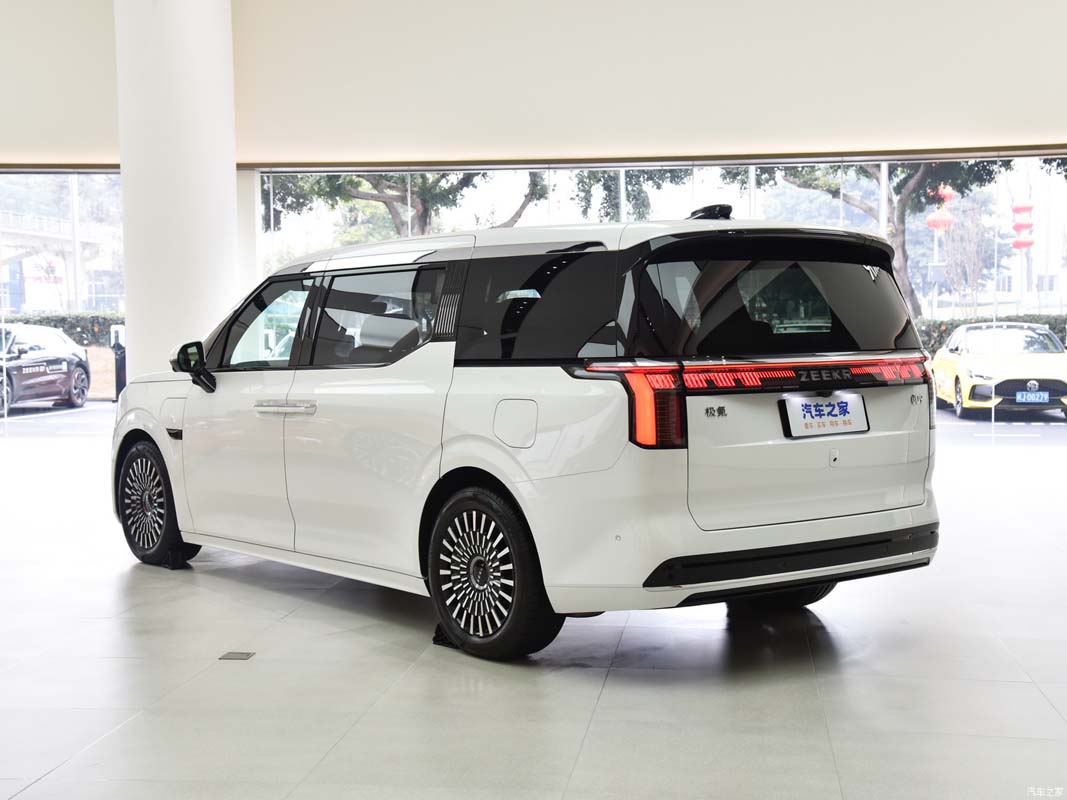 从外观上来看,它采用了非常科幻的 Cyberpunk 设计风格,它的前脸是大面积的银色封闭式水箱护罩,内涵 32 颗 LED 光源,可以实现“流水灯”的效果,加上两边设计独特的泪滴式灯组,不仅看起来非常大气,也为这款车带来了很高的辨识度,另外车侧虽然和一般的 MPV 车型一样是比较方正的外形设计,但是原厂用了 Dual Tone 悬浮式车顶以及在车窗上加入了银色的饰条来为它增添一丝贵气,加上多幅式的轮圈,让你一看它就知道它的身价不菲,而侧滑门在这个级别车型上可说是必备的配备了,至于车尾则用了名为“光之翼”的贯穿式尾灯,里面融入了 402 颗 LED,看起来非常绚丽,而且原厂还将它设计到车侧两旁,看起来和头灯组有着相呼应的效果,至于中间则有 ZEEKR 的品牌名字,整个尾部设计很独特。
