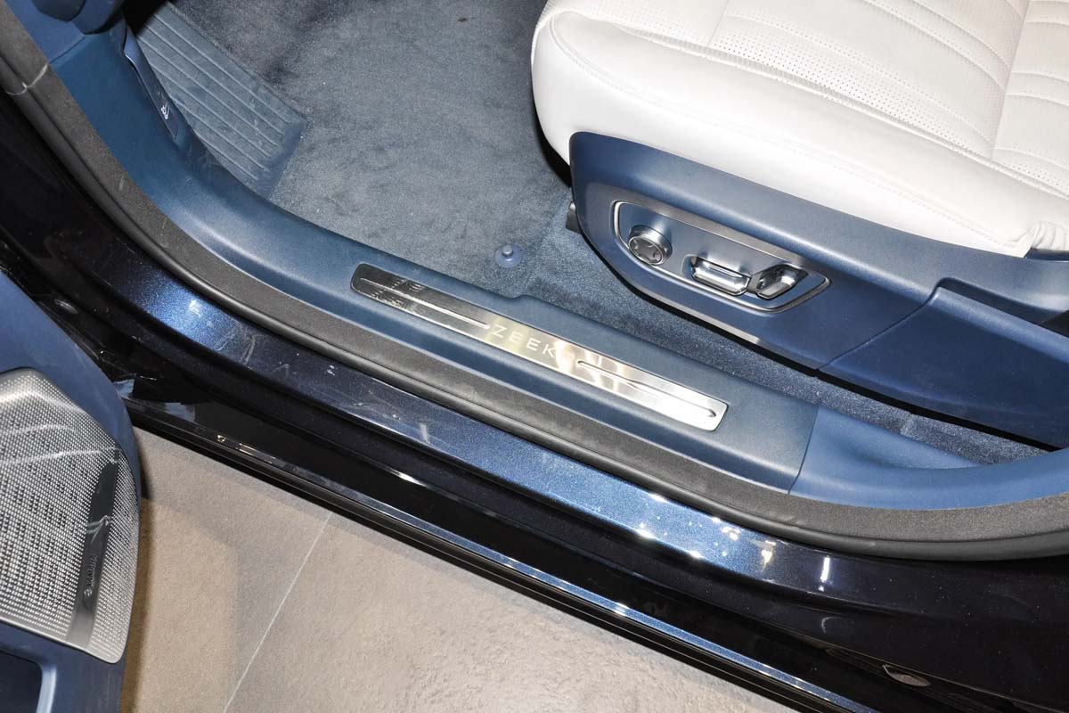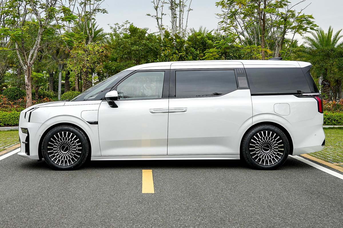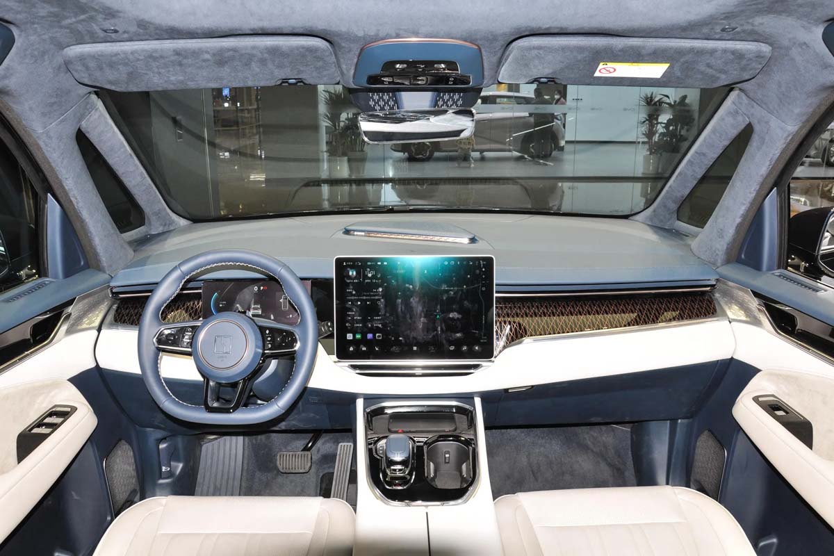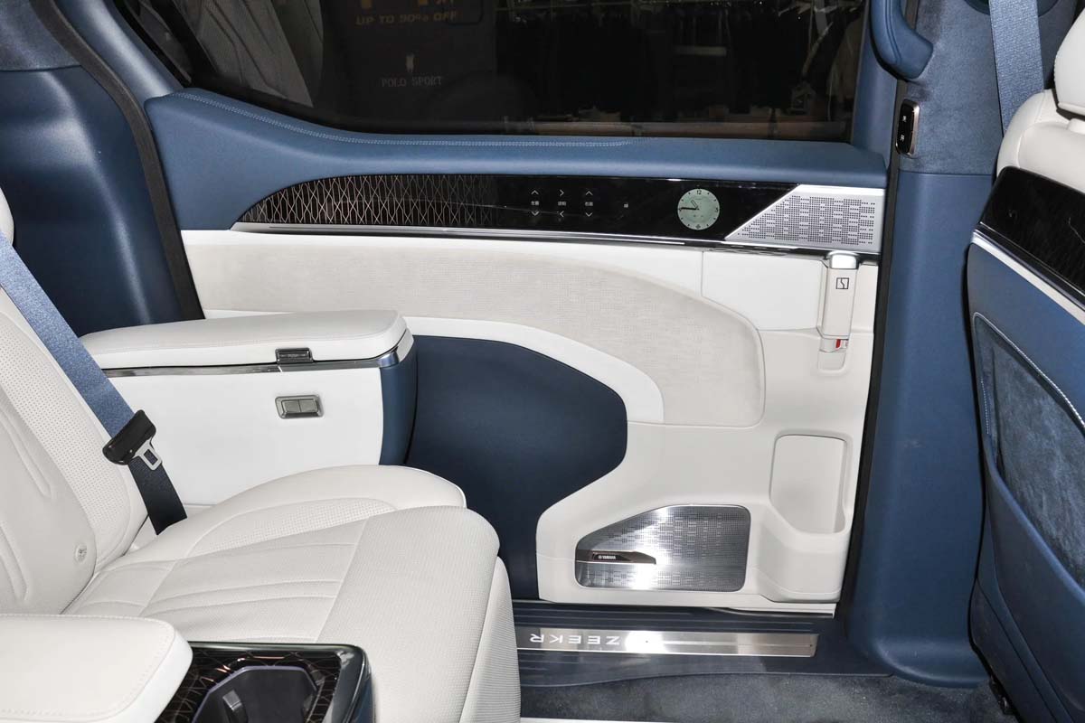 从外观上来看,它采用了非常科幻的 Cyberpunk 设计风格,它的前脸是大面积的银色封闭式水箱护罩,内涵 32 颗 LED 光源,可以实现“流水灯”的效果,加上两边设计独特的泪滴式灯组,不仅看起来非常大气,也为这款车带来了很高的辨识度,另外车侧虽然和一般的 MPV 车型一样是比较方正的外形设计,但是原厂用了 Dual Tone 悬浮式车顶以及在车窗上加入了银色的饰条来为它增添一丝贵气,加上多幅式的轮圈,让你一看它就知道它的身价不菲,而侧滑门在这个级别车型上可说是必备的配备了,至于车尾则用了名为“光之翼”的贯穿式尾灯,里面融入了 402 颗 LED,看起来非常绚丽,而且原厂还将它设计到车侧两旁,看起来和头灯组有着相呼应的效果,至于中间则有 ZEEKR 的品牌名字,整个尾部设计很独特。