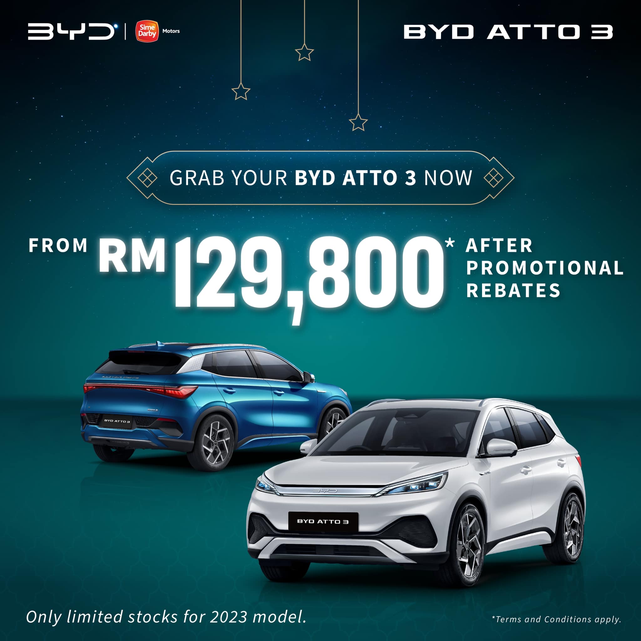 全车系优惠 RM 20,000!2023 BYD Atto 3 限时降价促销,仅卖 RM 129,800 起。
