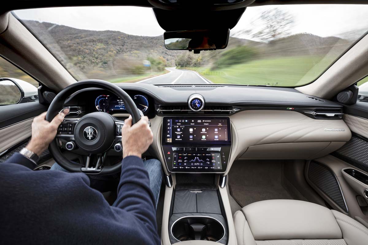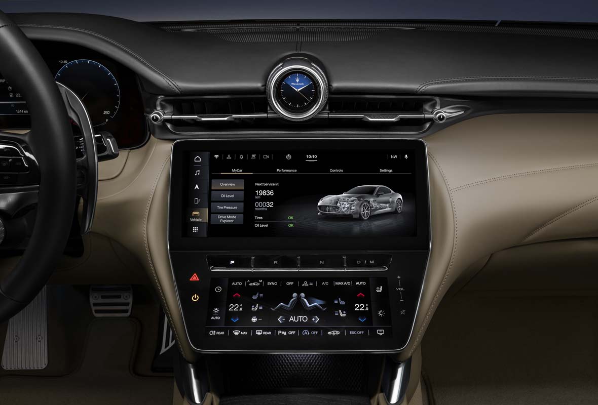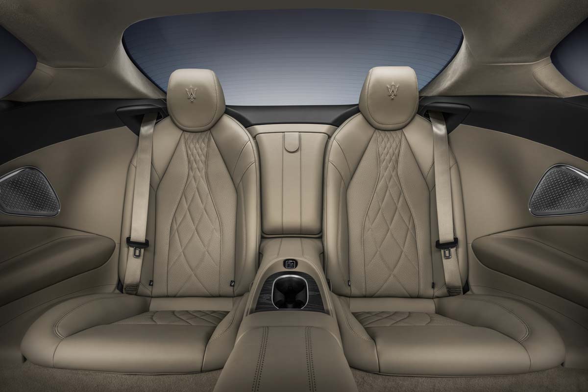 来到内饰的部分,这款车是 2 + 2 的 4 座布局,并且外媒实测第二排空间也可以让你舒适地开着这辆车载人出游,而它整体用的是玛莎拉蒂新一代的设计风格,可以看到它有 12.2 寸全液晶仪表、12.3 寸中控触屏主机,而主机里面内置了 Maserati Intelligent Assistant(MIA)系统,这套系统整合了中控触屏主机、时钟屏幕及 HUD 抬头显示器上显示的资讯,另外可以看到它整个内装采用大量的 Carbon Fiber 和 Alcantara 材质,整个内装看起来质感绝佳,战斗感十足,再加上有最多 19 个音响,最高 1,195W 功率的 Sonus facer 高级音响系统,可以给到你绝佳的听觉享受。