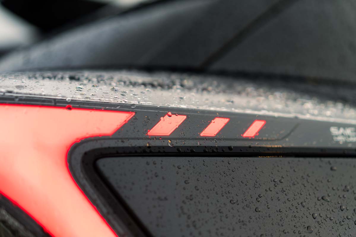 外观设计部分,采用了较为欧式的设计风格,包括非常尖锐的头灯组并且内建 LED Projector 头灯还有3D LED 尾灯设计,在尾灯设计还有凸起,和上方的大型尾翼组成了双尾翼设计,整体的运动感受非常强烈,另外这款车除了入门版本车型之外都拥有主动式进气格删,可以在车辆行驶的启动来强化车辆的空力力学。