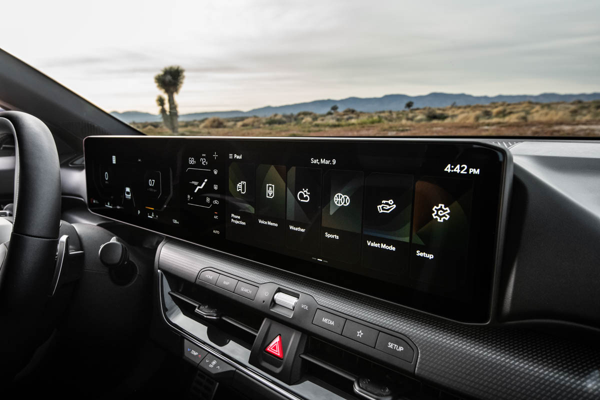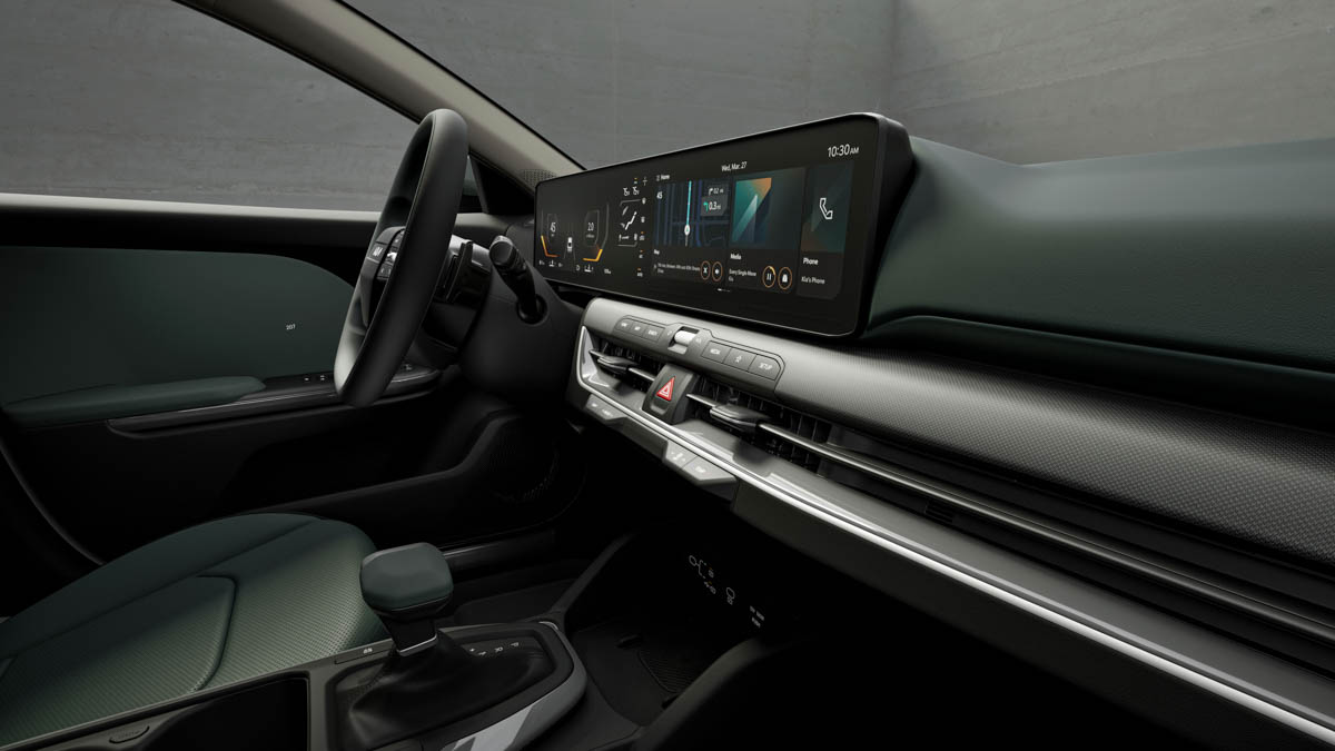 来到内装的部分,这款车采用了 Kia 近年来惯用的双联屏设计,它是由 12.3 寸全液晶仪表和 12.3 寸中控触屏主机,加上一个 5 寸的冷气控制面板,组成了尺寸接近 30 寸电子显示面板,另外它的内装采用了极简设计风格,可以看到车内仅保留了常用功能的实体按键,而多层次的中控台也显得很有层次感,不过值得一提的是它的方向盘上不是在正中间的 Kia Logo 很可能会“逼死”有强迫症的朋友,除此之外在配备上它也非常丰富,像是 Wireless Apple CarPlay 和 Android Auto 手机连接功能及 Harman Kardon / BOSE 高级音响等等配备都可以在这款车上看到。