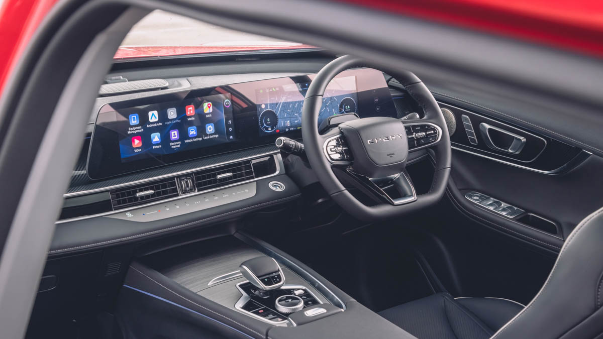 那在外观上这款车和 Tiggo 8 Pro 虽然会有比较明显的差异,但是在内饰部分其实两者是大同小异的,它整体还是沿用了奇瑞的家族式设计语言,像是时下流行的双联屏设计、D 字形运动方向盘、电子排挡杆等等基本上你很难通过内饰辨别两款车,不过这款车仅提供 5 人座的座椅布局,据悉实际空间表现和 X70 相当,属于中规中矩的范围。
