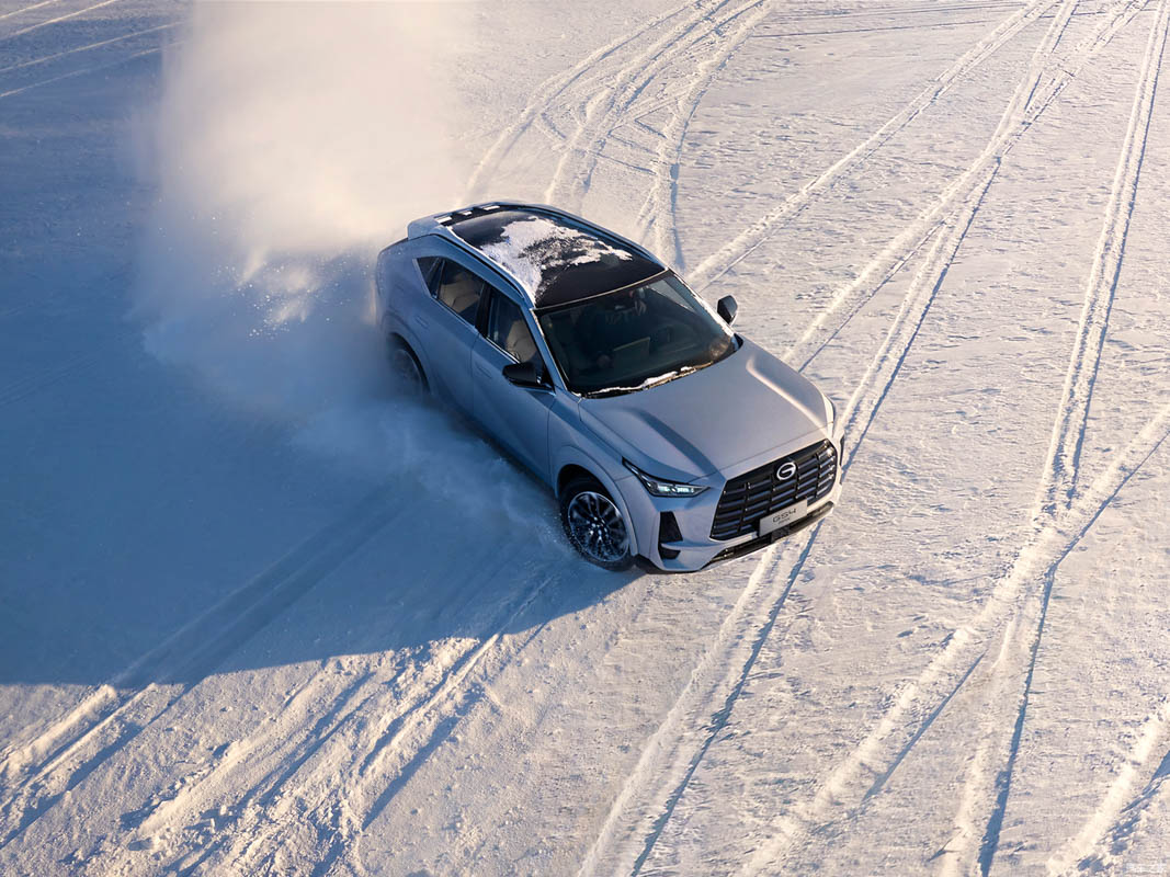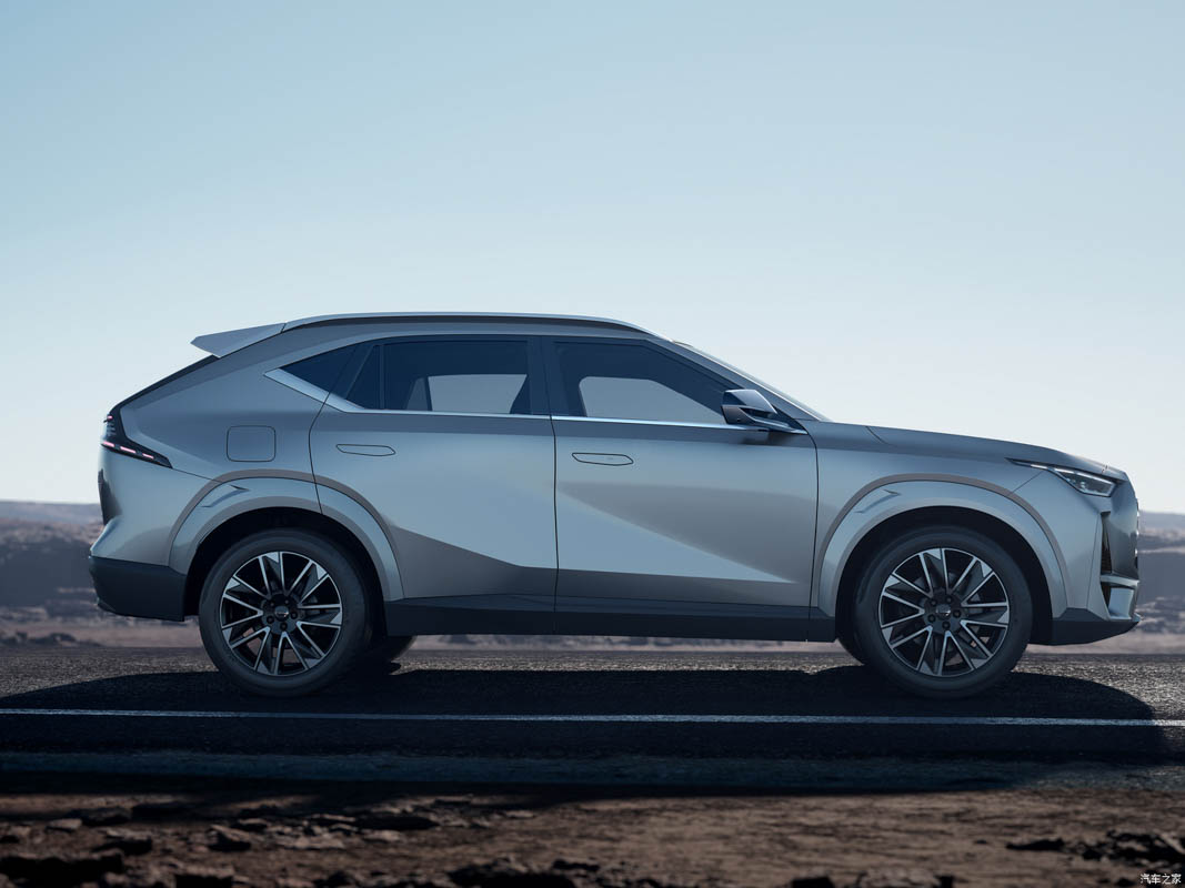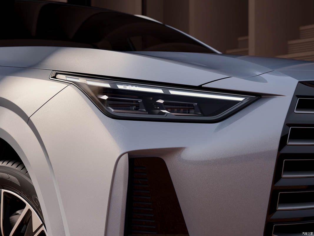 首先在外观上这款车融入了中国神兽“麒麟”作为设计元素,这款车整车采用了带有肌肉感的线条设计,细节上可以看到它的前脸拥有造型方正的梯形水箱护罩,搭配上旁边照射距离长达 150m,名为“启明之眼”的细长头灯组,让到整个前脸看起来非常大气稳重,而在车侧它就有隐藏式门把手、富有线条感的造型及微微突出车身的轮拱,再加上 C 柱之后能看到一个凌厉向下的溜背造型,同时它还配有独特的贯穿式尾灯设计,整个设计成熟中又带有一丝运动气息。