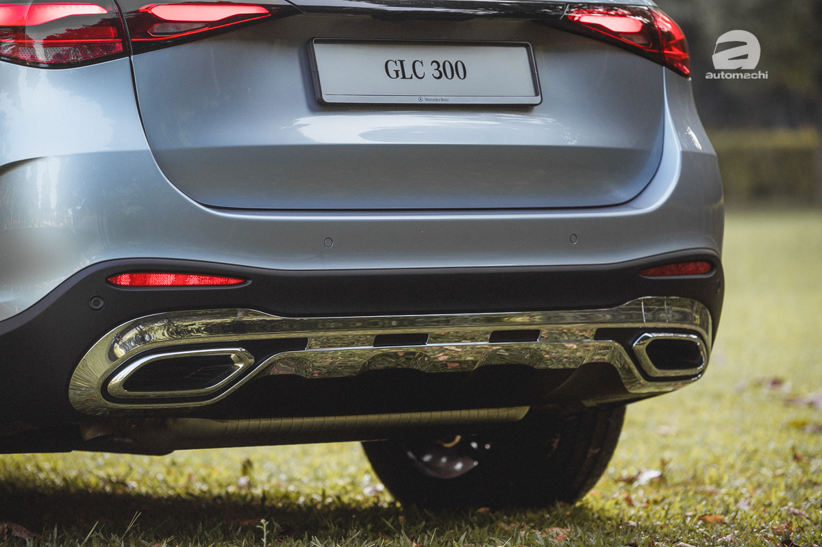 简单和大家回顾一下这款车,在外观的部分新一代 GLC 使用了更为豪华稳重的设计,同时又不失运动感,相当好看,它在整车的设计多是圆润的线条,在它的前脸上有着造型硕大的水箱护罩,里面的三芒星奔驰 Logo 被一条刀片式的横条贯穿,同时里面有 AMG Line 独有的满天星设计,至于两侧则是 DIGITAL LIGHT 的 LED 头灯组,而在保险杠上就有更运动化的设计,整体造型相当 Sporty,另外在车侧就是大气平稳的线条设计,加上 20 寸的多辐式轮圈,而车尾就和 C-Class 相似的尾灯组设计,同时它的下方保留了排气管设计,能在电动车流行的时代一眼看出不同。
