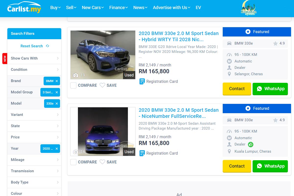 二手车推荐:2020 BMW 330e,颜值高、性能好、操控佳,仅开价 RM 165,800 起。