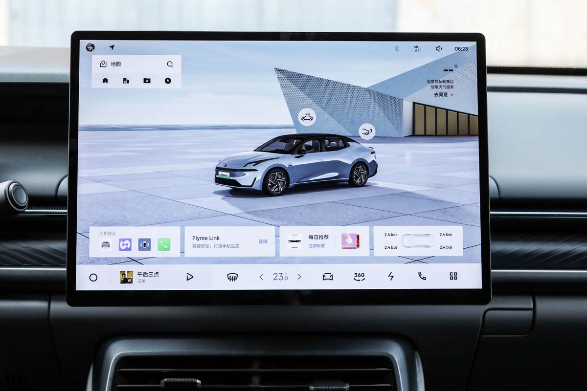 在内饰这款车就用上了 12.3 寸全液晶仪表及 2.5K 分辨率超窄边框的 15.4 寸中控触屏主机,这个主机里面内置了领克和魅族合作的 LYNK Flyme Auto 系统,可以带来很多的智能化体验,另外这款车用上了 Harman Kardon 的 23 具喇叭高级音响,而且它是全球唯二引入 WANOS 全景声的车款,而这将帮助它为车内乘客带来全新三维沉浸式听觉盛宴,同时在它的喇叭内还内置了氛围灯,除了好看外它还内置 DOW 开门警示,如果在乘客下车时有障碍物驶过,车子除了会阻止你直接开门外,还会在音响喇叭那里有闪烁灯光提醒你。