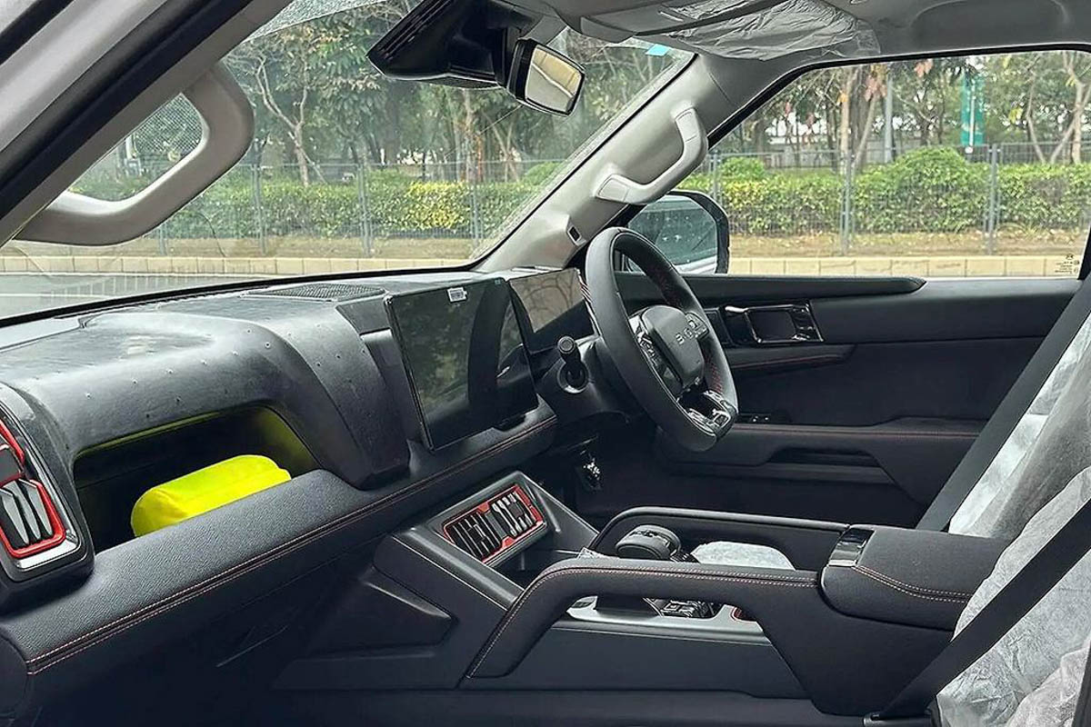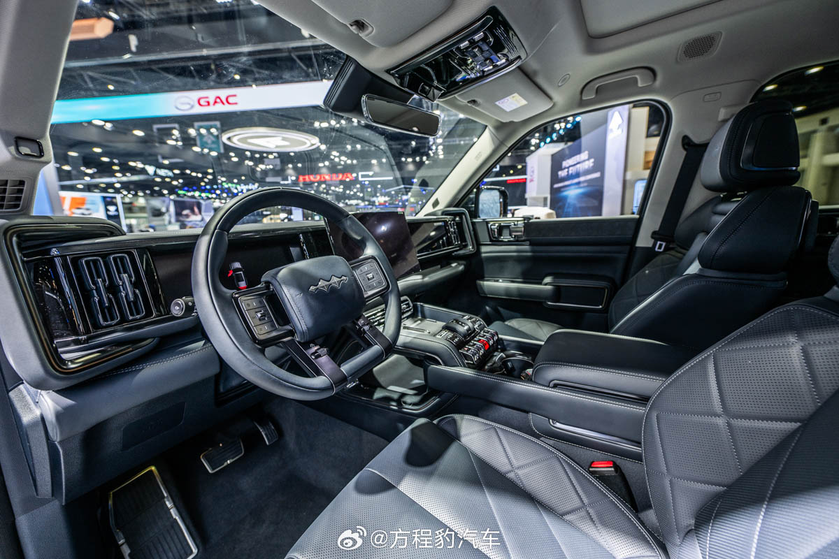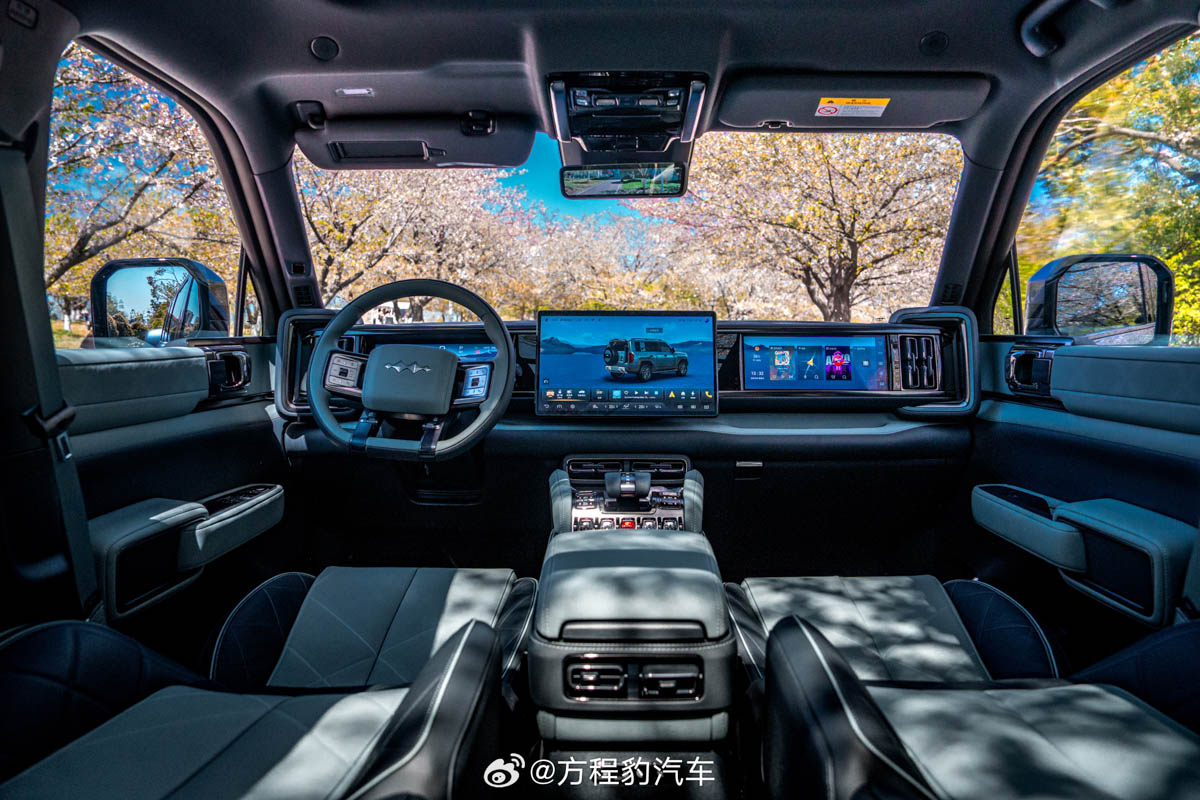 来到内装的部分,根据早前外媒拍到的谍照,这款车将会和方程豹豹 5 采用同款的内装布局,像是有 12.3 寸全液晶仪表、15.6 寸中控触屏主机等等,同时它的中央鞍座上除了特大类似于飞机控制的挡把及按键,并且整个内饰也不像一般的皮卡只注重实用性,它还和很多中国品牌车款一样,有着很好的质感呈现,视觉效果上可谓是相当吸引人眼球。