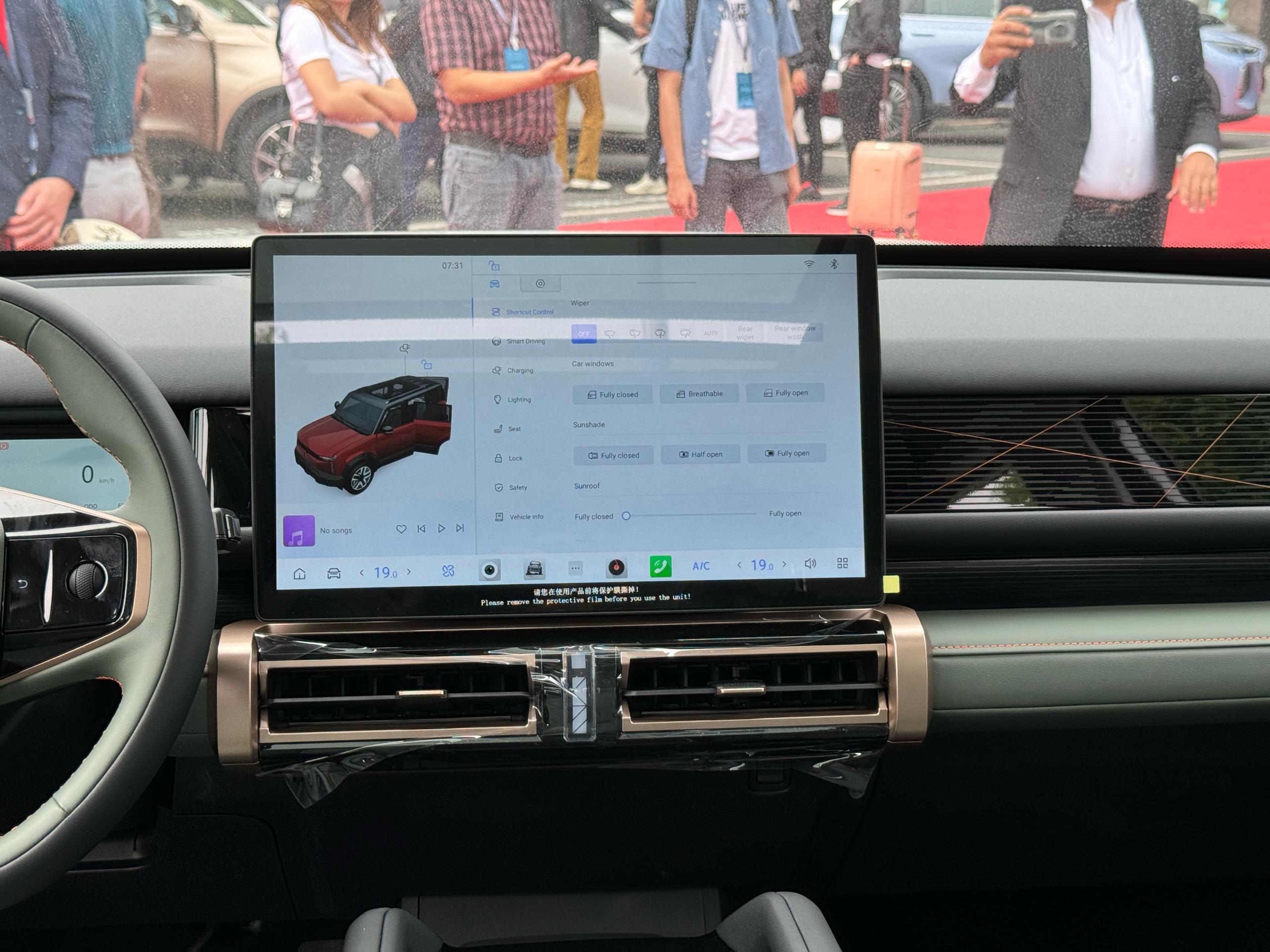来到内饰的部分,这款车就延续了中国车一贯的大屏及出色质感,可以看到它有全液晶仪表和大尺寸中控触屏主机,而它整个内装铺陈虽然是硬派越野车一贯的设计,但是通过多种材质的点缀,为它带来了一点豪华的视觉效果,像是大量的皮革/软质塑胶、冷气出风口上的金属饰板及水晶旋钮等等,整个质感的呈现可谓是颠覆你对以前的硬派越野车的印象。