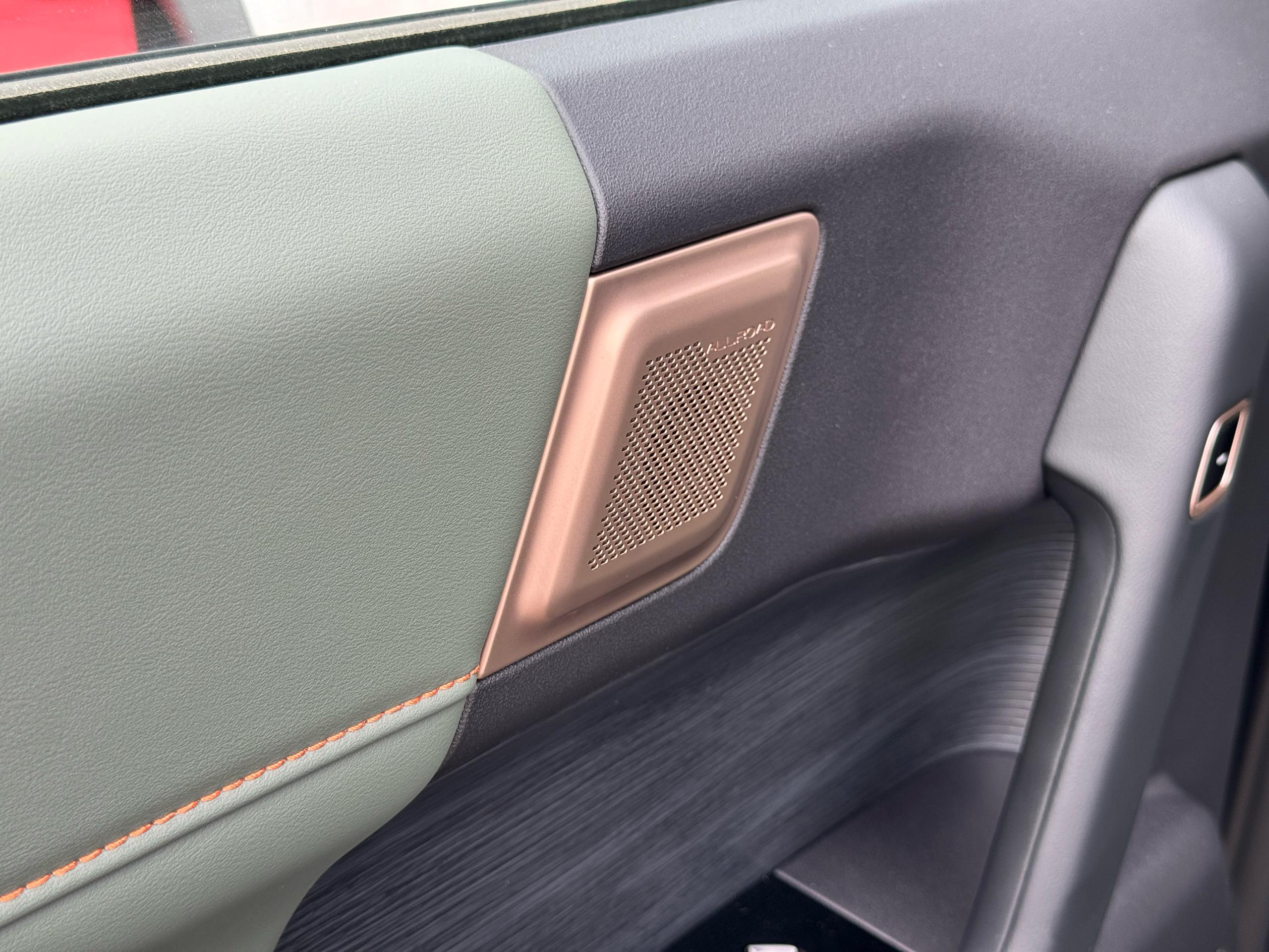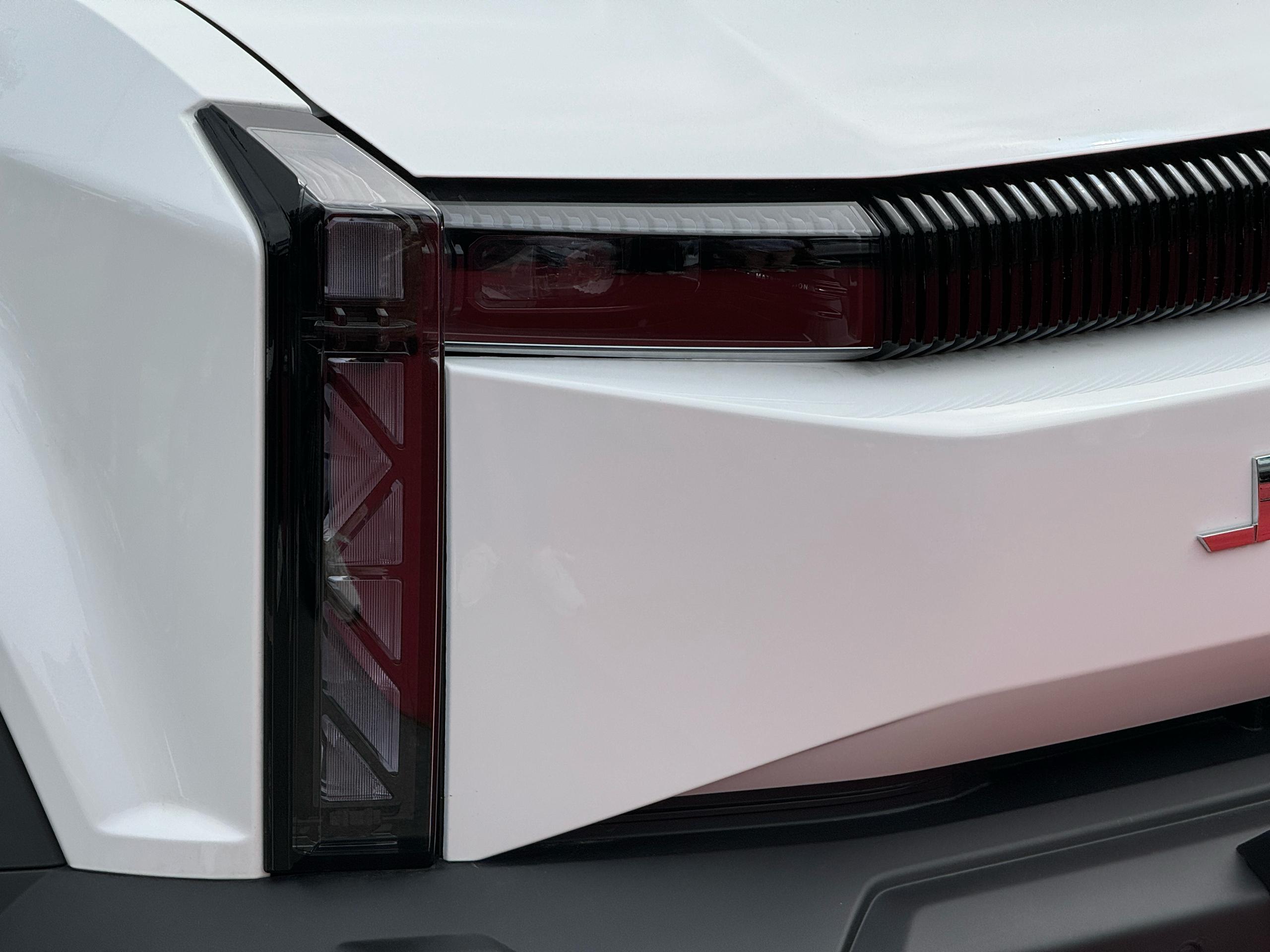 首先这款车的车身尺码达到 4,406 mm X 1,910 mm X 1,715 mm,轴距 2,715 mm,车长属于是 B-Segment SUV 范畴,而这款车采用了 i-BOX 方盒设计美学,可以看到它整体沿用了一般上硬派越野车方正的设计风格,并且在车身四周下沿还有大量黑色防刮材质,让你在进行轻度越野时不容易刮伤车漆,而它虽然走的是硬派越野路线,但是它的一些设计却相当具有科幻感,像是“i”型数字指挥灯组,除了中间会发光的 Logo 外,两侧也还有放大了的 Logo 作为日行灯,而且它采用隐藏式门把手,加上车尾还有侧开的电吸尾门加上类似越野车外挂备胎的储物箱,整个造型可谓是复古得来又相当时尚,另外这款车也拥有 6 种不同的颜色,并且命名也非常有趣,分别是“不蕉绿”、“真烦银”、“果然白”、“确实黑”、“有点灰”及“我好蓝”。