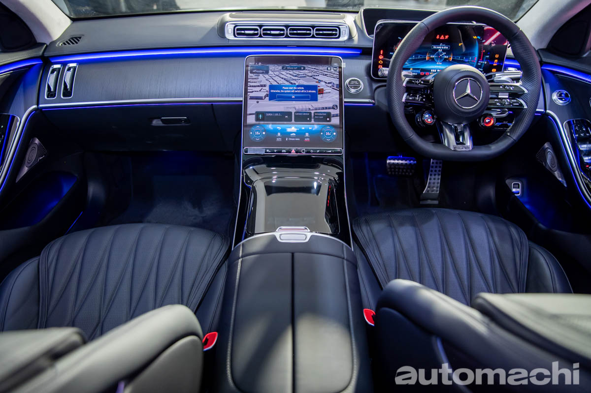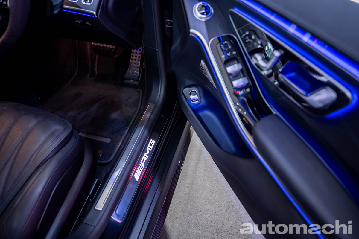 来到内饰的部分,这款车也延续了普通版 S-Class 奢华的内饰,包括了大尺寸全液晶仪表及直列式中控触屏主机,不过作为 AMG 车型,它也有很多专属配备是普通车款没有的,像是带有 Drive Select 操控旋钮的 AMG 方向盘、Carbon Fibre 饰板、AMG 专属仪表及设定,同时这款车还有多达 7 种驾驶模式,让你可以随性控制这款车,同时作为一款高性能老板车,这款车也有照顾到后排老板的舒适性,像是超舒适的带电动座椅调节的后排座椅,同时中央扶手还有一个控制屏让老板可以随时操控车内的娱乐系统。