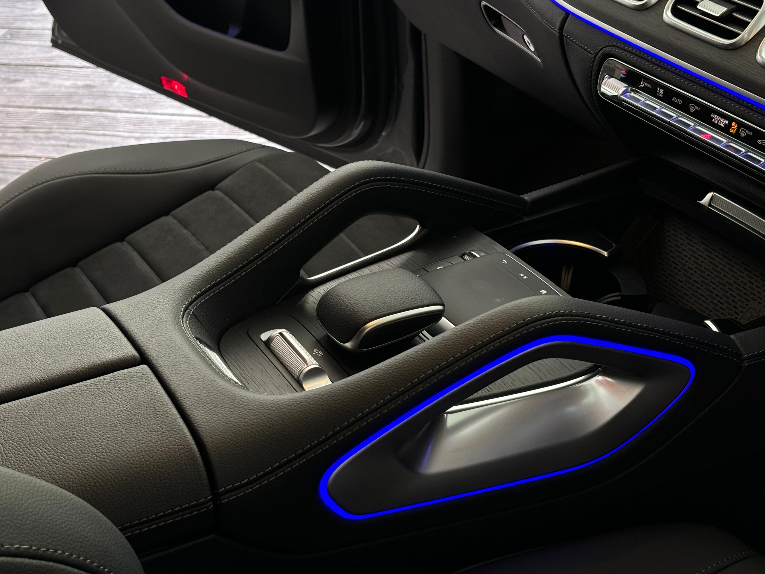作为小改款车型,可以看到原厂为这一次新的 GLE 换上了新的日行灯、水箱护罩及前唇,让它整体看起来更加犀利霸气,完美符合一辆老板车该有的气场,同时新车也拥有 AMG Line 运动空力套件,可以看到水箱护罩中布满了“满天星”的三芒星小厂徽,加上更运动的保险杠、宽体轮拱、21 寸轮圈及尾翼,让它看起来更加年轻帅气。