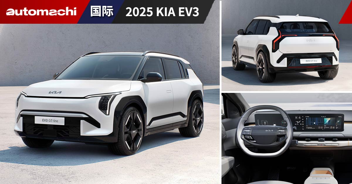 2025 Kia EV3 全球首发:家族最入门纯电车型,最远续航 600 km。